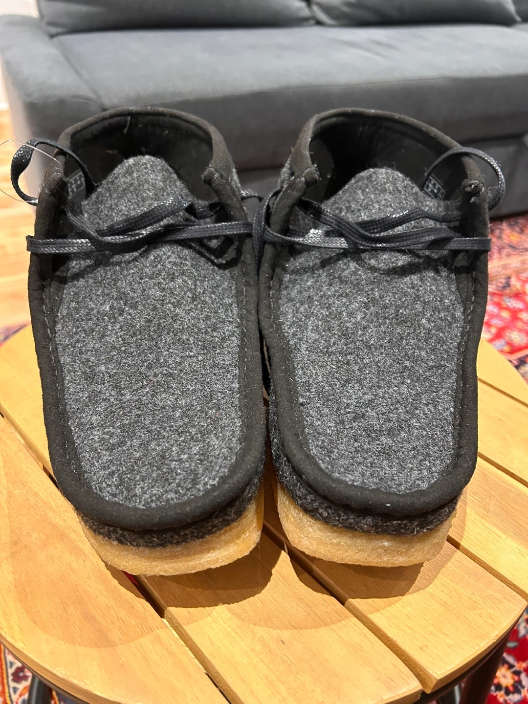 Selling a pair of Clarks Originals Wallabee shoes. Brand new. Rare dark grey colour. Size 10.5 US men’s. Originally $200. Willing to take $100.