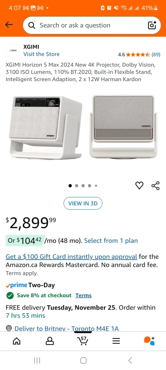 Selling a XGIMI Horizon S Max 2024 4K Projector. It features Dolby Vision, 3100 ISO Lumens, 110% BT.2020, Built-in Flexible Stand, Intelligent Screen Adaption, and 2 x 12W Harman Kardon speakers