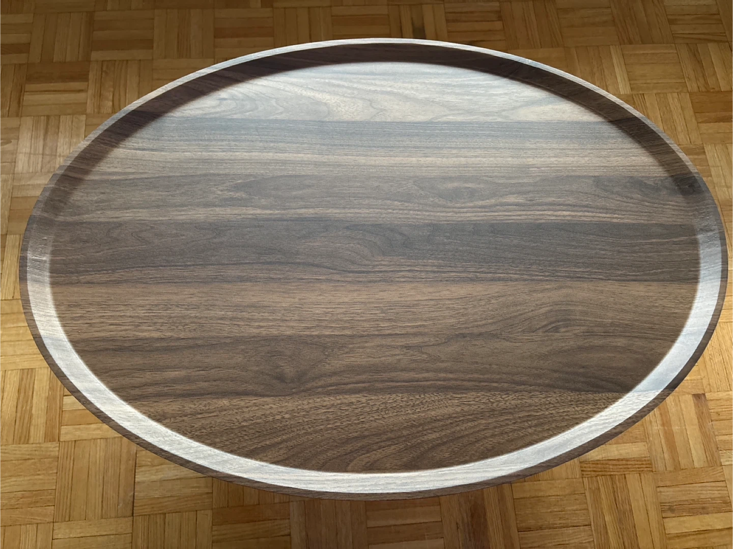 Selling a lovely round coffee table! It's in great shape and would look fantastic in any living room. The wood grain is really beautiful, and the simple design makes it super versatile