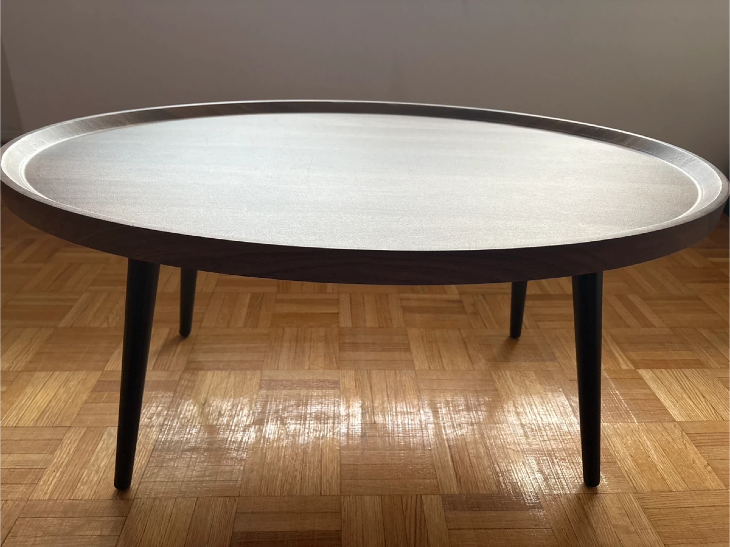 Selling a lovely round coffee table! It's in great shape and would look fantastic in any living room. The wood grain is really beautiful, and the simple design makes it super versatile