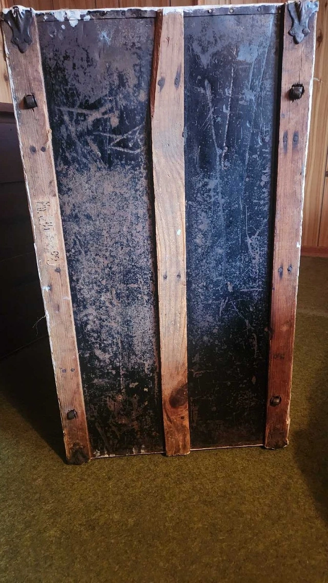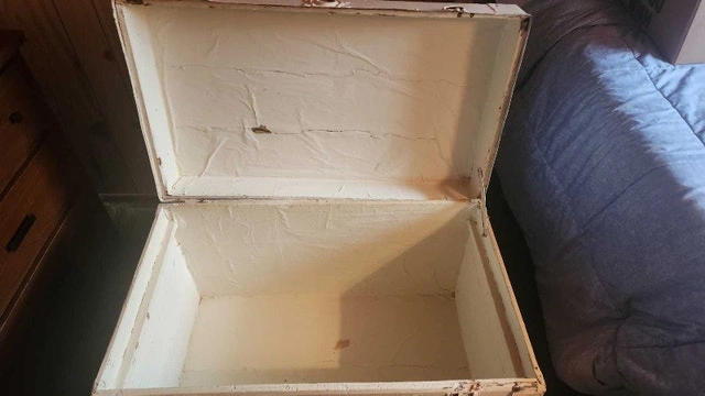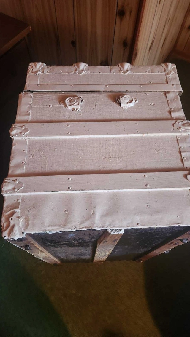 Needs to go. Make an offer This antique trunk is a unique piece, perfect for adding a vintage touch to your home decor. Please note that it is a used item and shows signs of wear consistent with its age, which adds to its character. It’s been painted and has custom floral accents. Its in fair condition. Looking at similar antique trunks listed on Kijiji, a reasonable asking price would be between $75 and $250. Needs to go and don't want to On a whimsical note, if this ad is still posted, the trunk is still waiting to embark on a new adventure with you!