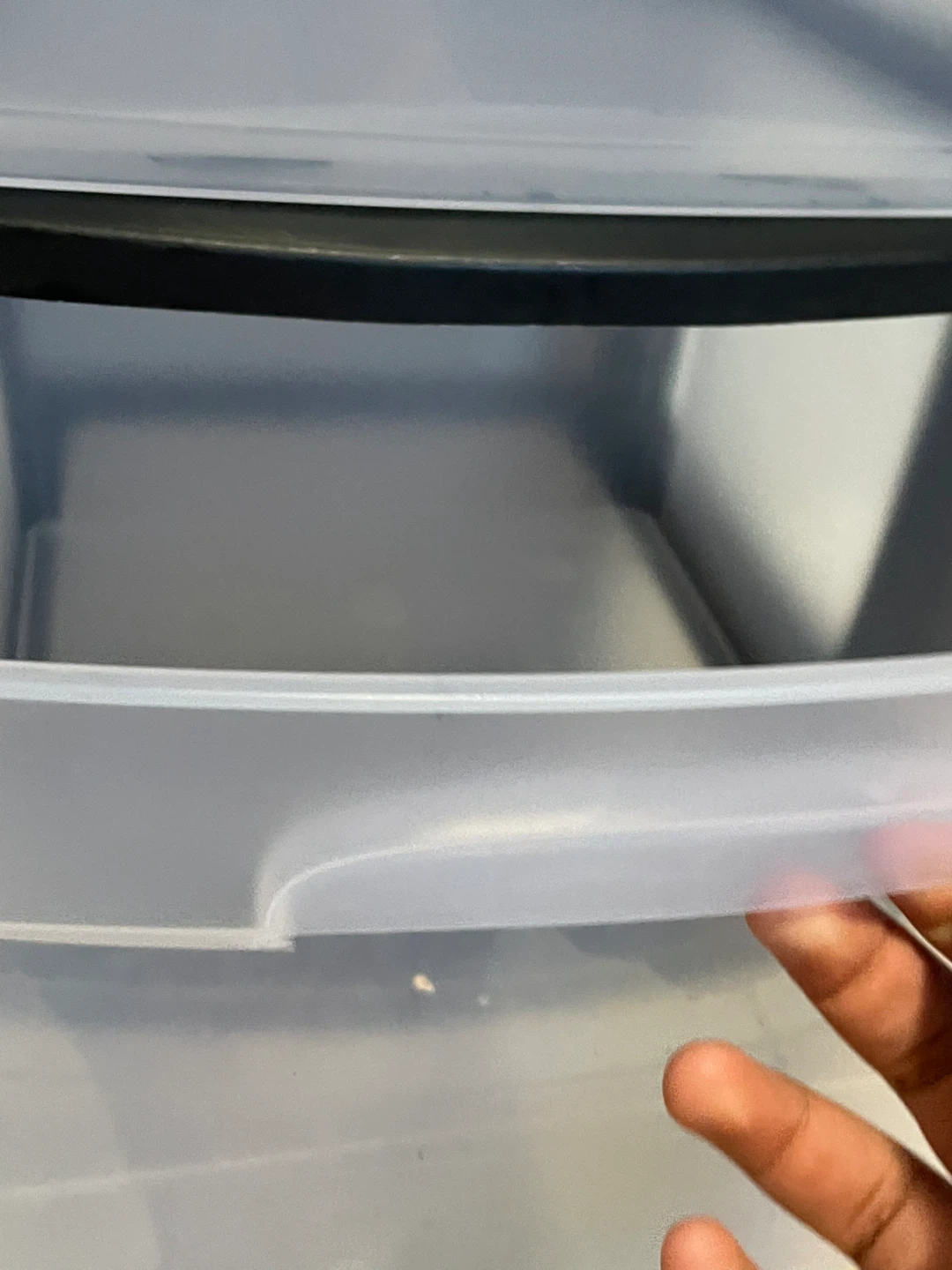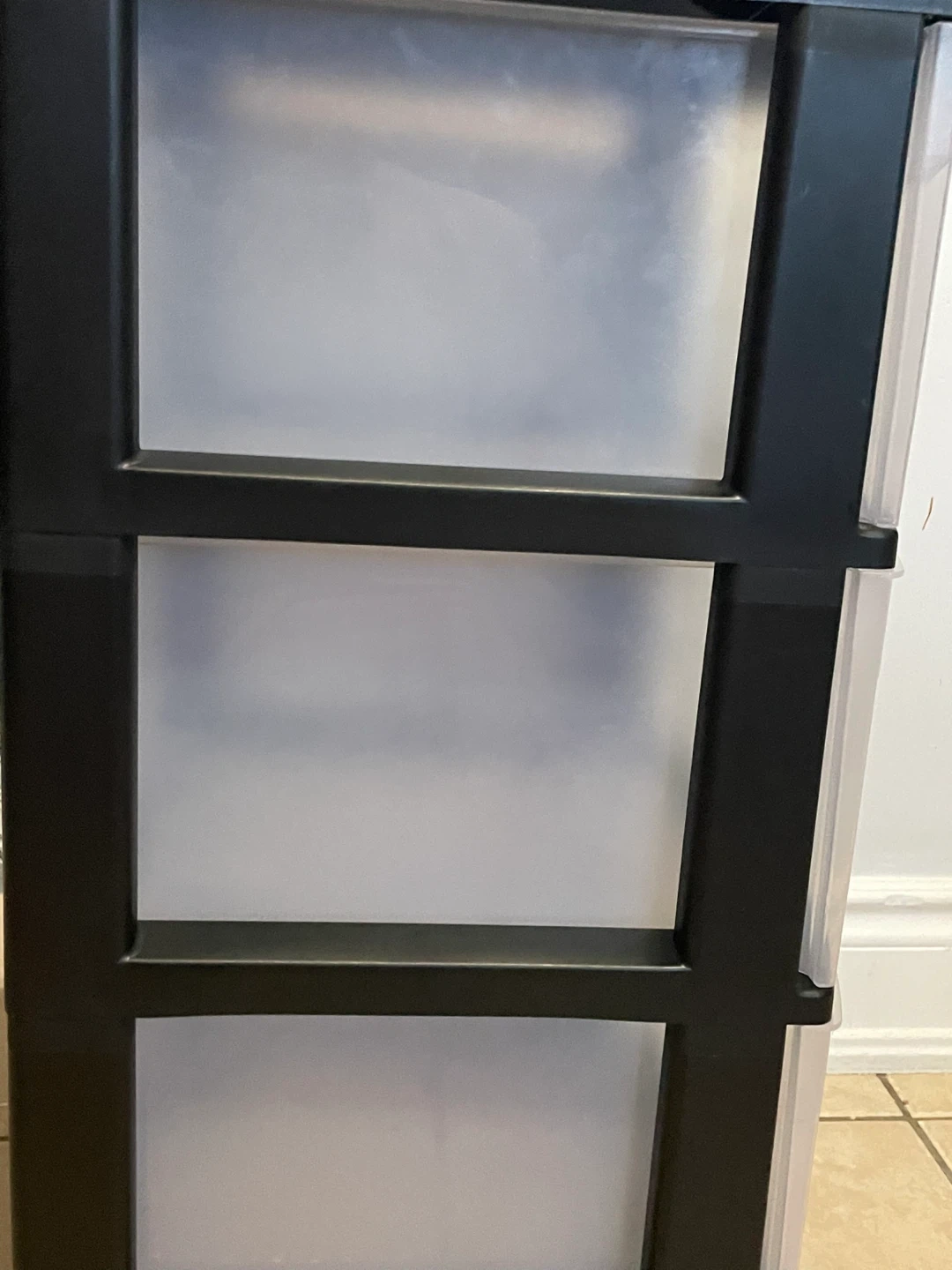Selling a 3-drawer storage tower with a black frame and translucent drawers. It's in great shape and ready to help organize your space!