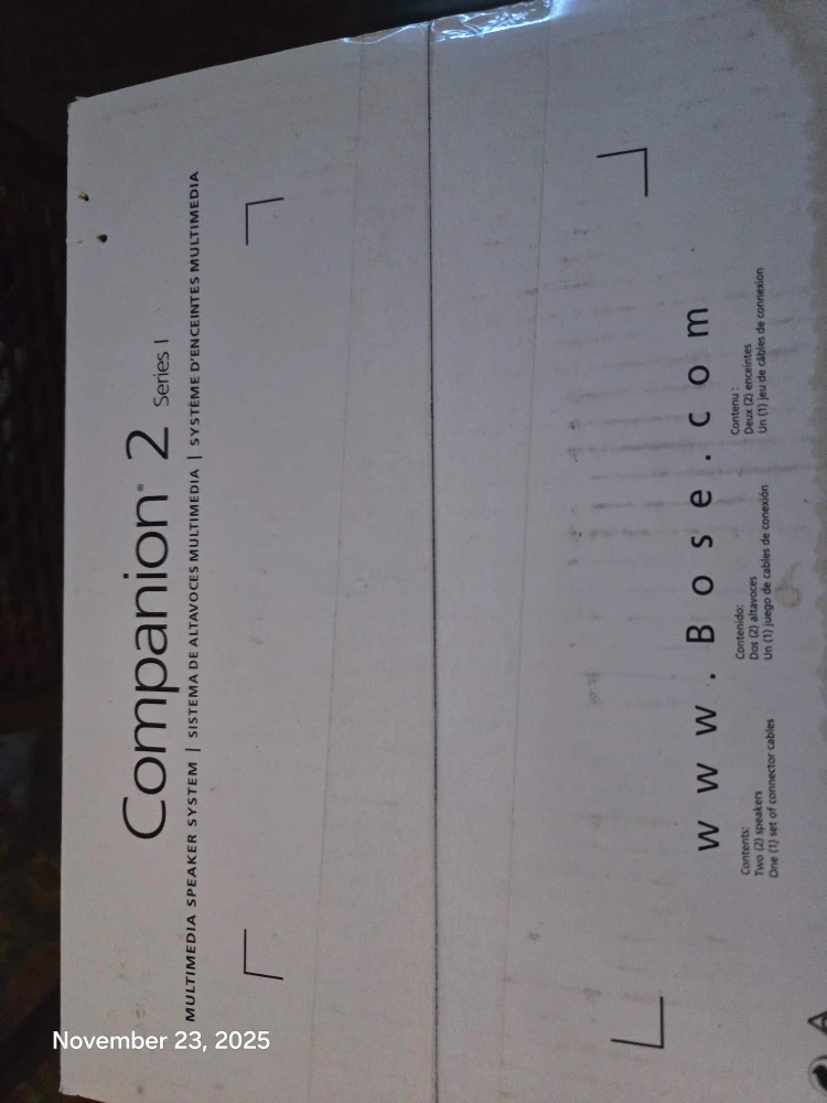 STILL IN BOX! NEW Bose Companion 2 Series I multimedia speaker system. Wired 2.0 channel speaker system for use with computers or other audio devices. Uses proprietary Bose TrueSpace® stereo signal processing circuitry to create a spacious soundstage and automatic tonal balance adjustment for rich audio at any volume.Each speaker enclosure contains 1 magnetically shielded 2.5-inch full-range driver and a ported cabinet design for enhanced bass.The right speaker features dual stereo RCA inputs, a 3.5 mm (1/8") headphone jack, and a connection for the left speaker.