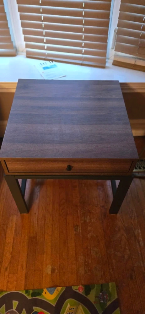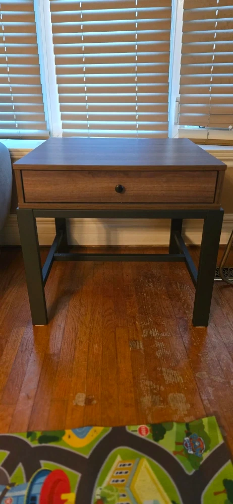 Selling a lovely brown wood side table! It features a handy drawer for storage and a sleek design that would fit well in any room. Originally from Structube. Laird collection.