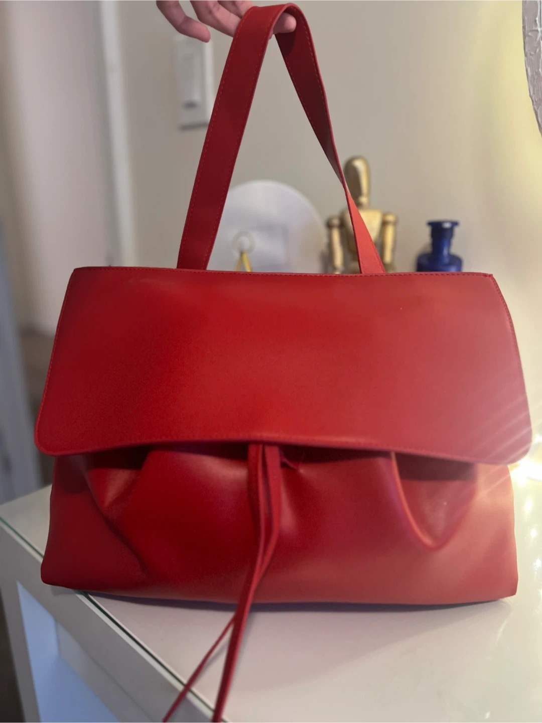 Selling a stylish red leather tote bag! It's in great condition and perfect for everyday use. The colour is a beautiful vibrant red. Let me know if you're interested!