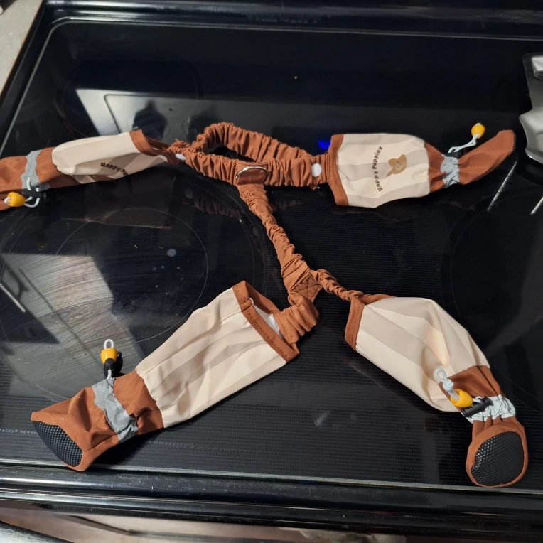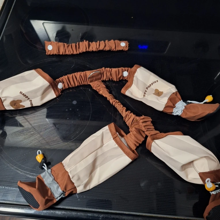 These Happy Puppies dog leggings are designed to keep your furry friend clean and comfy! They feature adjustable elastic legs for a snug fit and are made with anti-stain material, perfect for all sorts of adventures