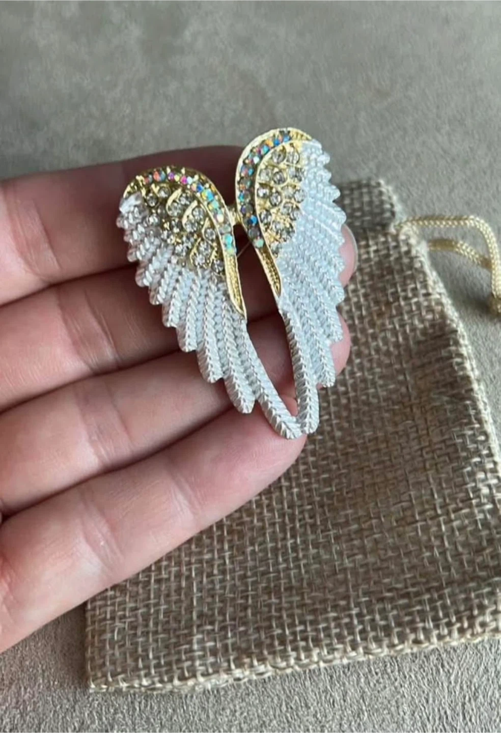 A beautiful angel wing brooch pin. It's in great condition and comes with a small pouch