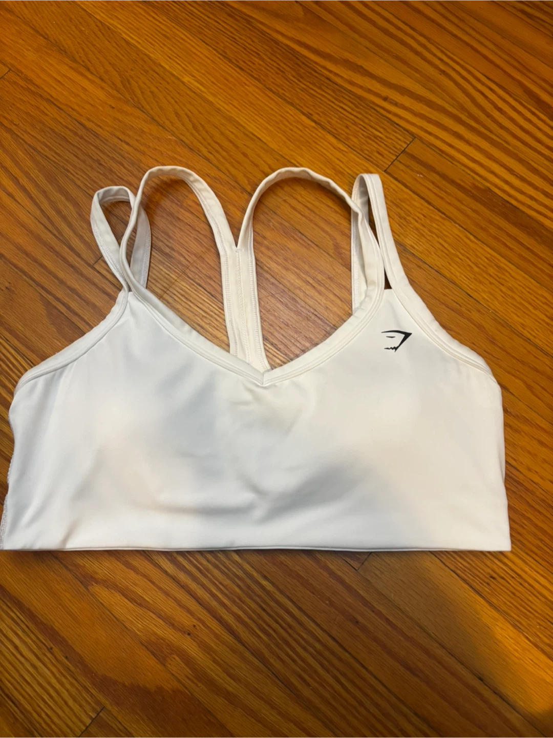 Gymshark White Sports Bra - Size L. $5 cash, porch pick up Kennedy and eglinton.