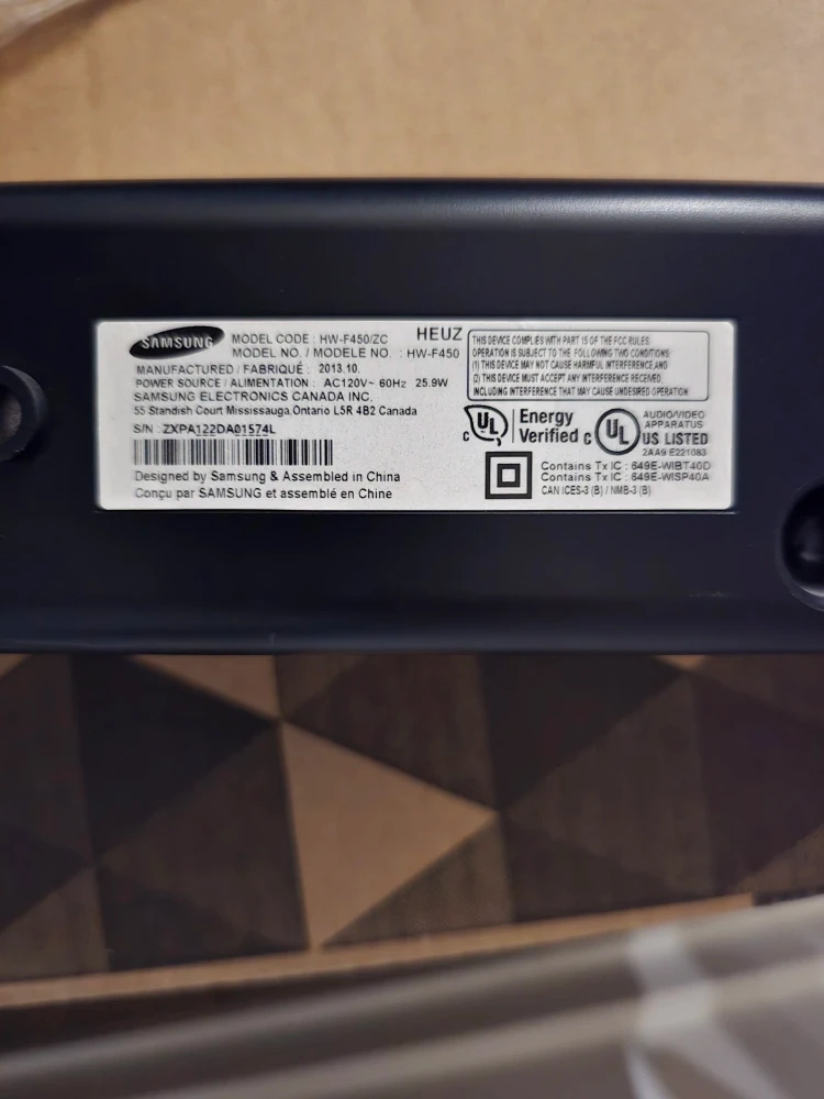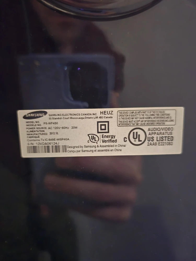 Selling a Samsung PS-WF450 soundbar. It's in used condition and comes with the subwoofer but no remote. Has slight damage but still works (see picture). Great sound and awesome bass.