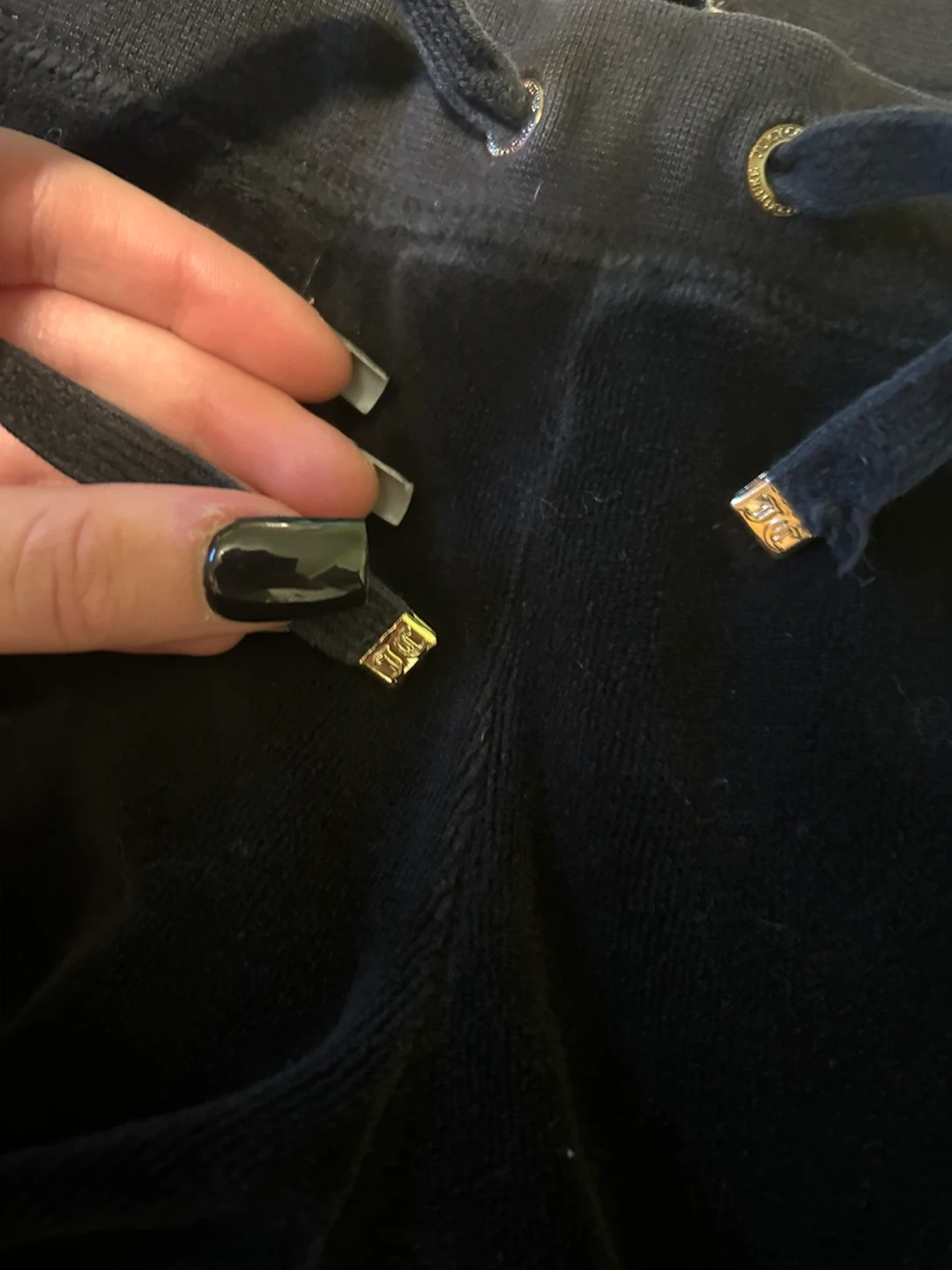 Selling a pair of Juicy Couture black velour pants in size small. They are in great condition and they are low rise. Comes from a smoke free household. Cash preferred