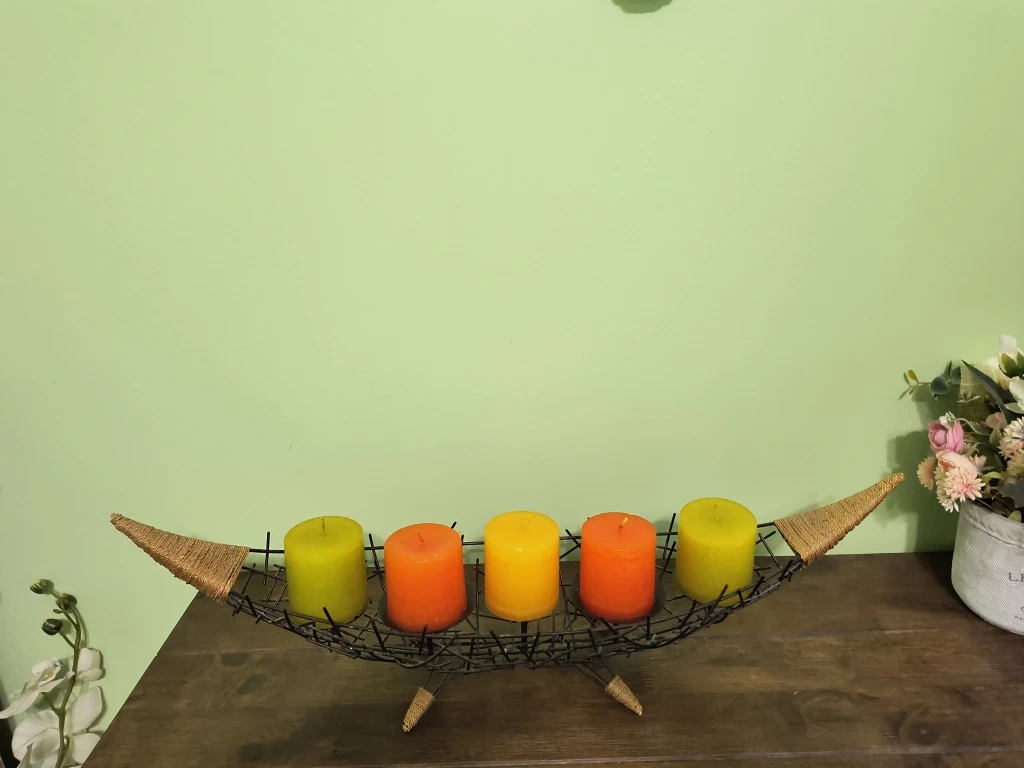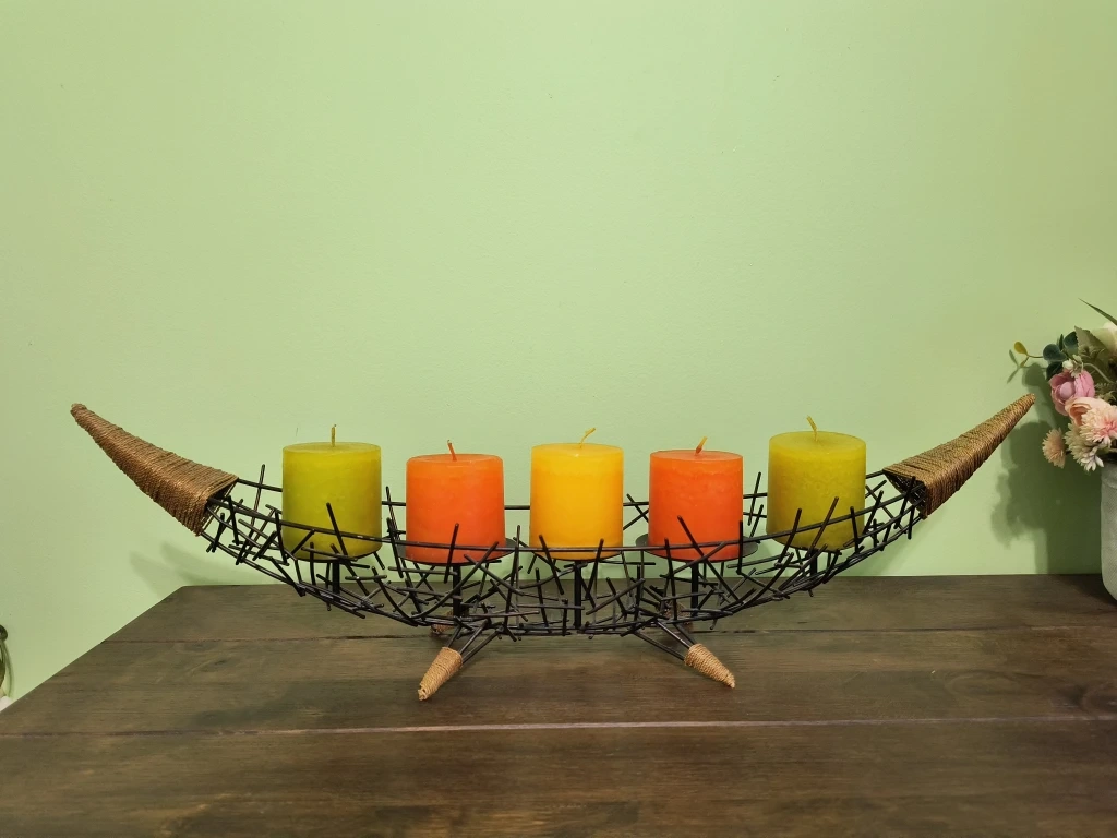 Selling a unique candle holder that comes with five colourful candles. It's a great piece to add some warmth and style to any room
