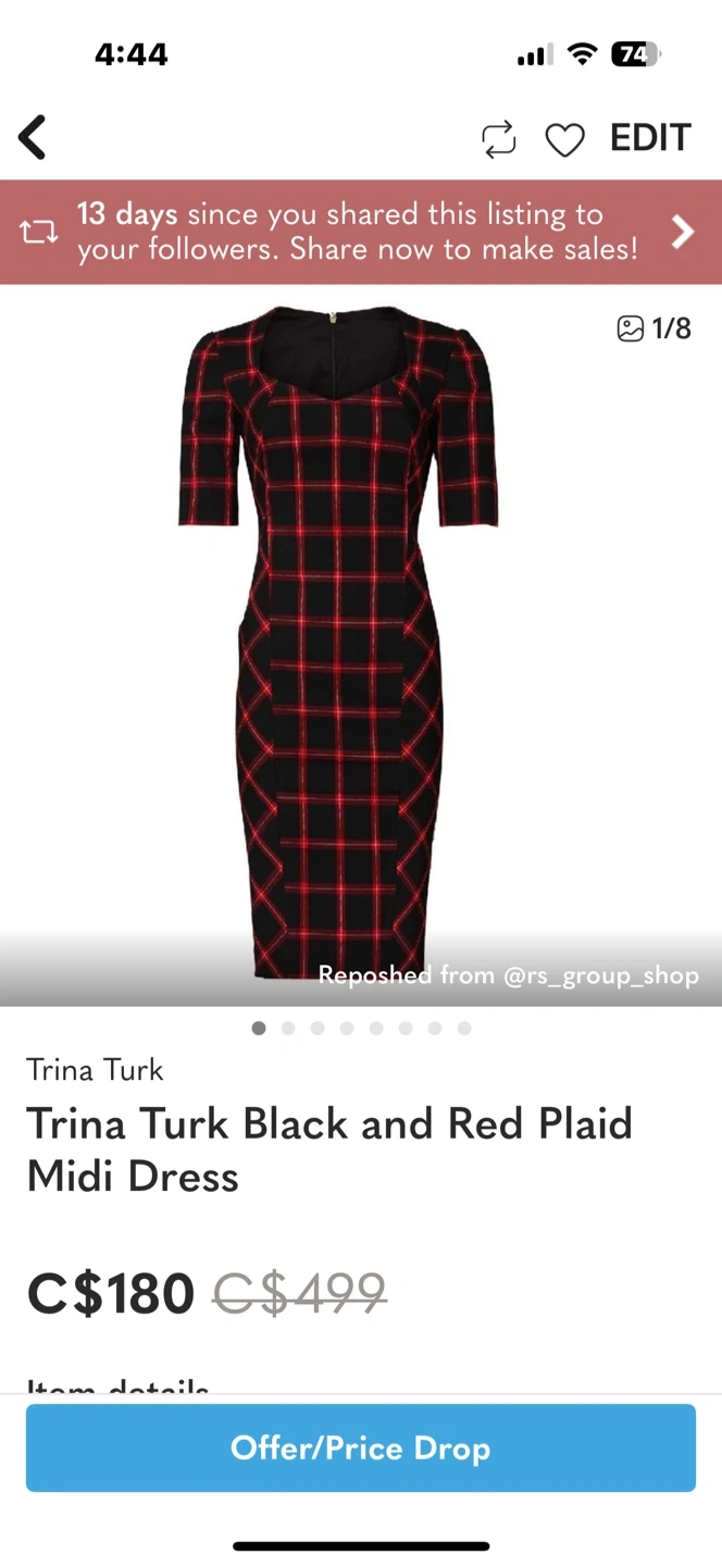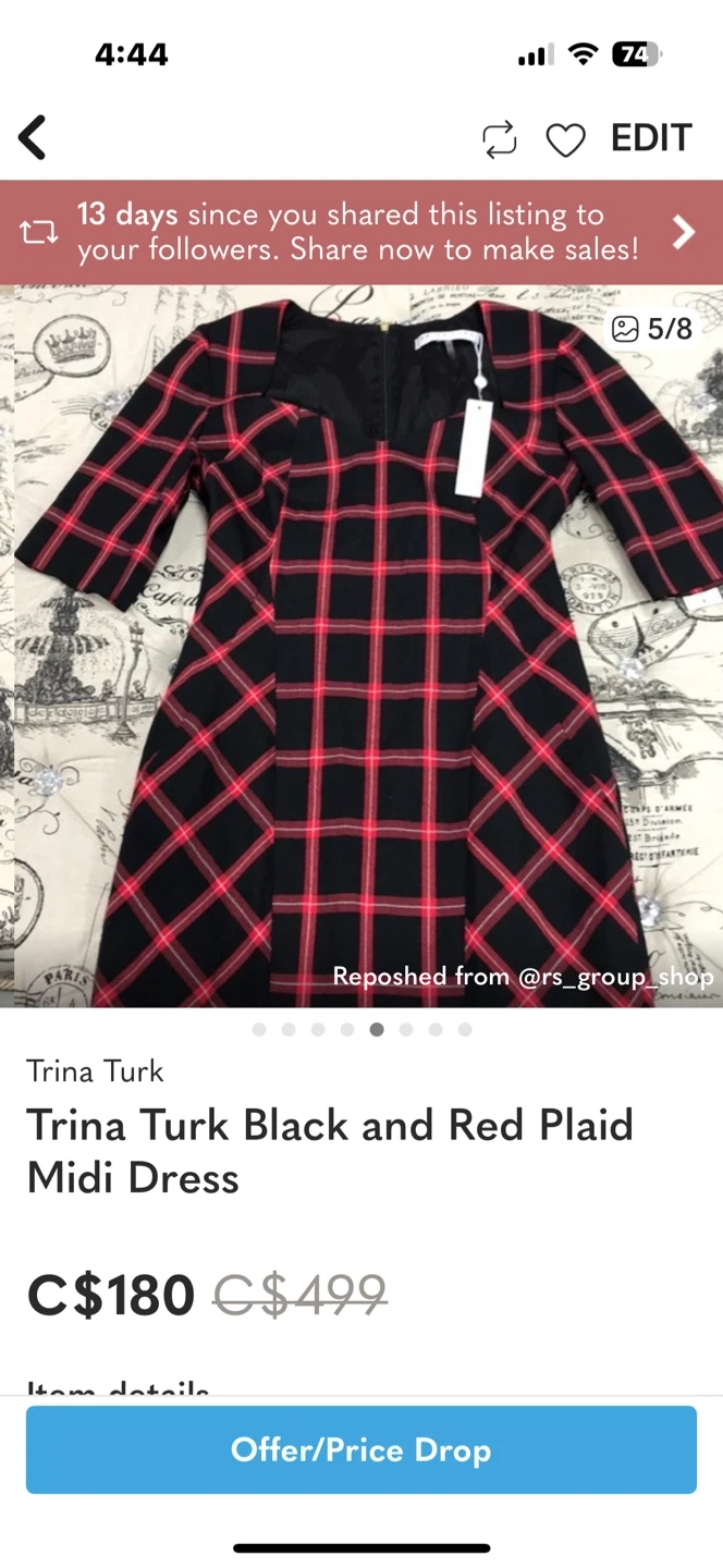Buy & SellTrina Turk Black and Red Plaid Midi DressTrina Turk Black and Red Plaid Midi Dress$117Selling a Trina Turk midi dress in a striking black and red plaid pattern! Brand new without tags. Selling at 25% of original price.ConditionNewSize6BrandTrina TurkWHERE TO MEETSpadina and St ClareView MapSELLERverifiedDarcetteMidtown Toronto29022 reviews0 chats·0 favorites·18 views