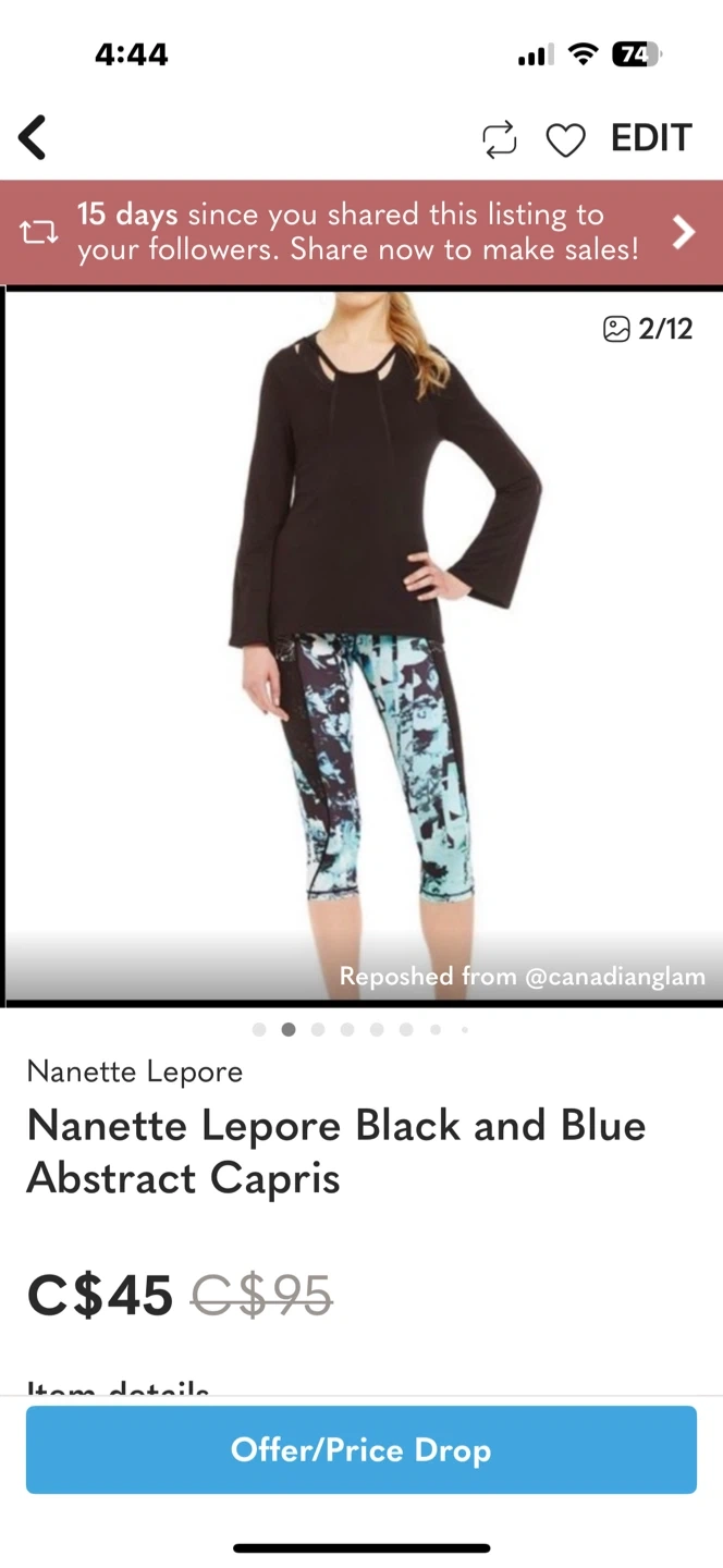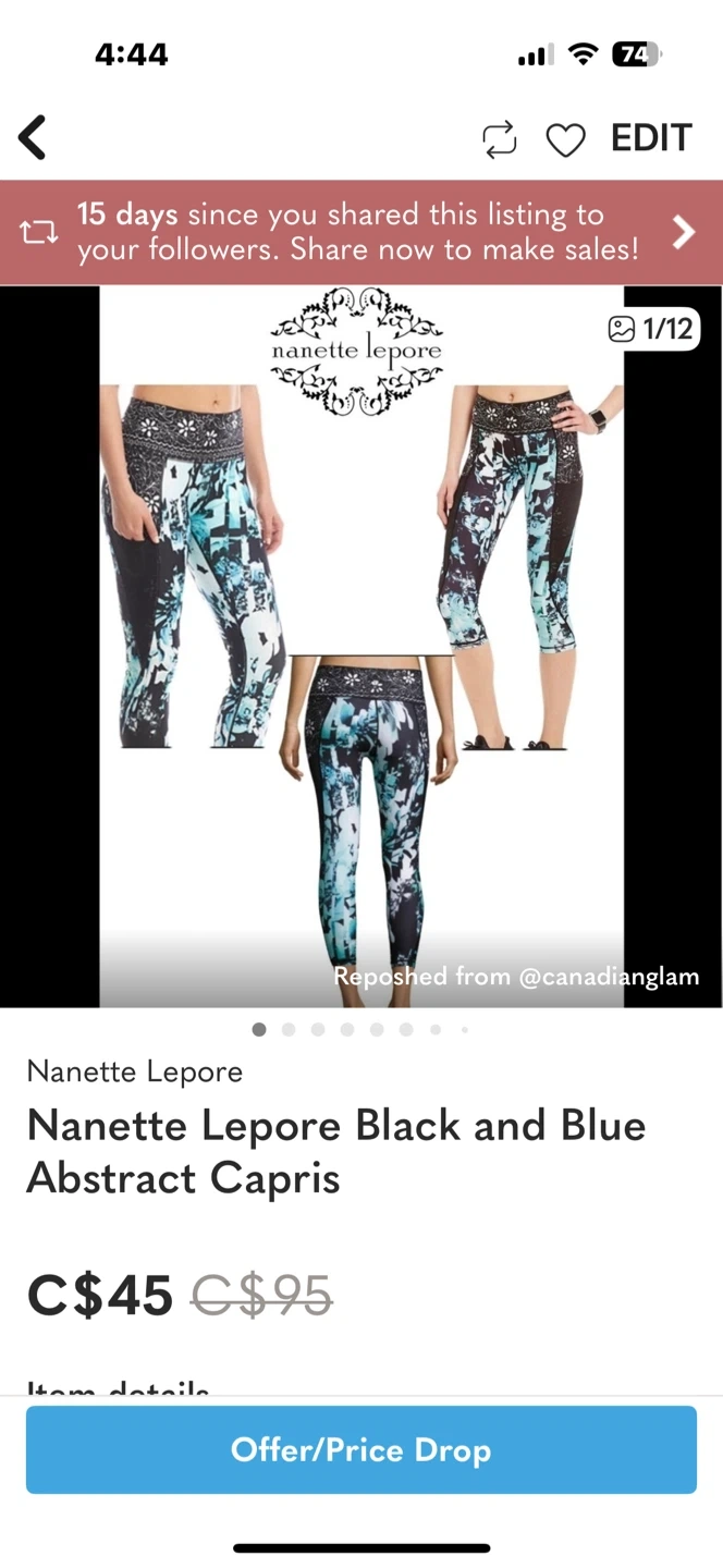 Buy & SellNanette Lepore Black/Blue Abstract CaprisNanette Lepore Black/Blue Abstract Capris$30Selling a pair of Nanette Lepore capris in a black and blue abstract print. They're in great condition and ready for a new home!SizeSmallBrandNanette LeporeWHERE TO MEETSpadina and St ClareView MapSELLERverifiedDarcetteMidtown Toronto28221 reviews0 chats·0 favorites·5 views