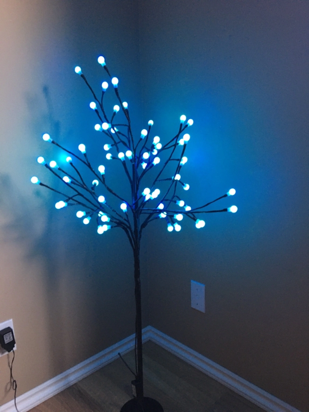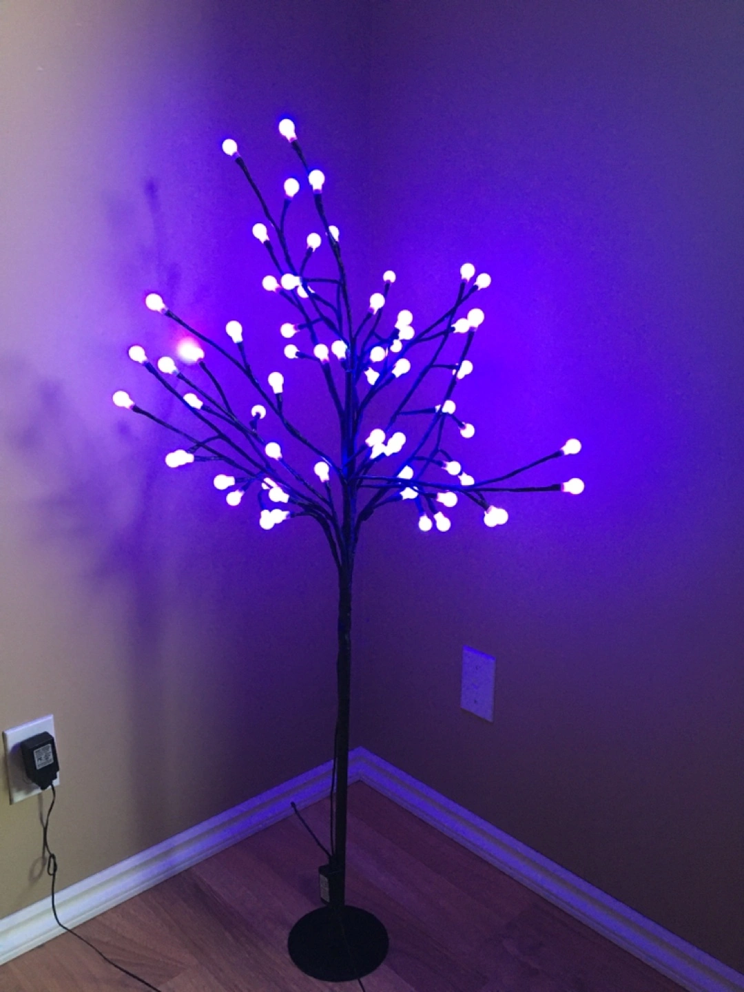 Illuminate your space with this colour-changing LED tree lamp! This gentlyused lamp features adjustable colour settings to create the perfect ambiance. It has a sturdy base and posable branches. It's in good condition, ready to brighten up any room.