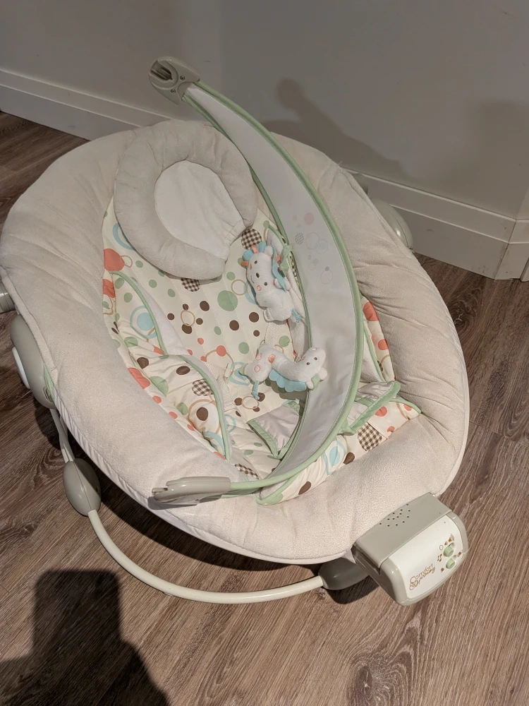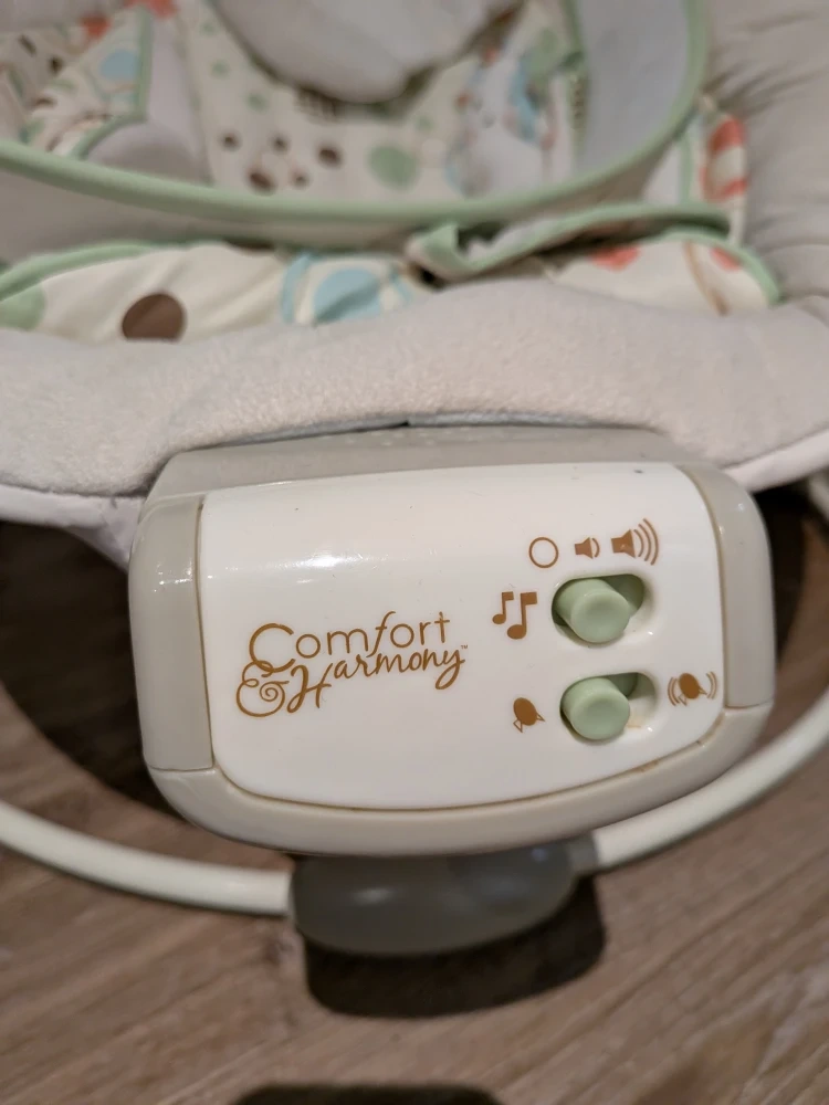 Selling a Comfort & Harmony baby bouncer in great condition! It features soothing music and gentle vibrations to keep your little one comfortable and entertained. Perfect for newborns and infants!