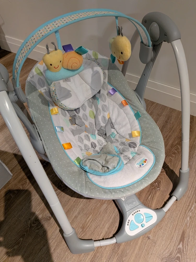Selling an Ingenuity Twinkle Twinkle Teddy Bear baby swing. It's in great condition and ready for a new home! This swing features a cute design with hanging toys to keep your little one entertained. It's perfect for soothing and relaxing your baby.