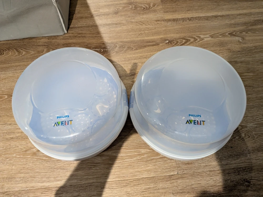 Selling two Philips Avent microwave steam sterilizers. They're in great condition and ready to use to sterilize your baby bottles and other items quickly and effectively using just your microwave