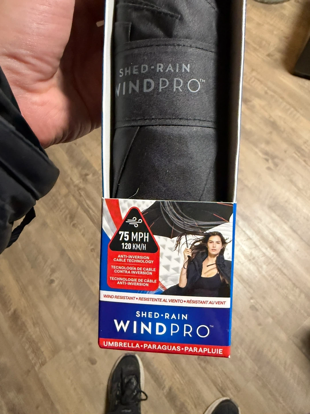 Selling a brand new ShedRain WINDPRO umbrella! It's never been used and comes in its original box. This umbrella is wind-resistant up to 75 mph (120 km/h). It features anti-inversion cable technology and a NanoSkin water-repellency coated canopy. Perfect for those rainy Vancouver days!