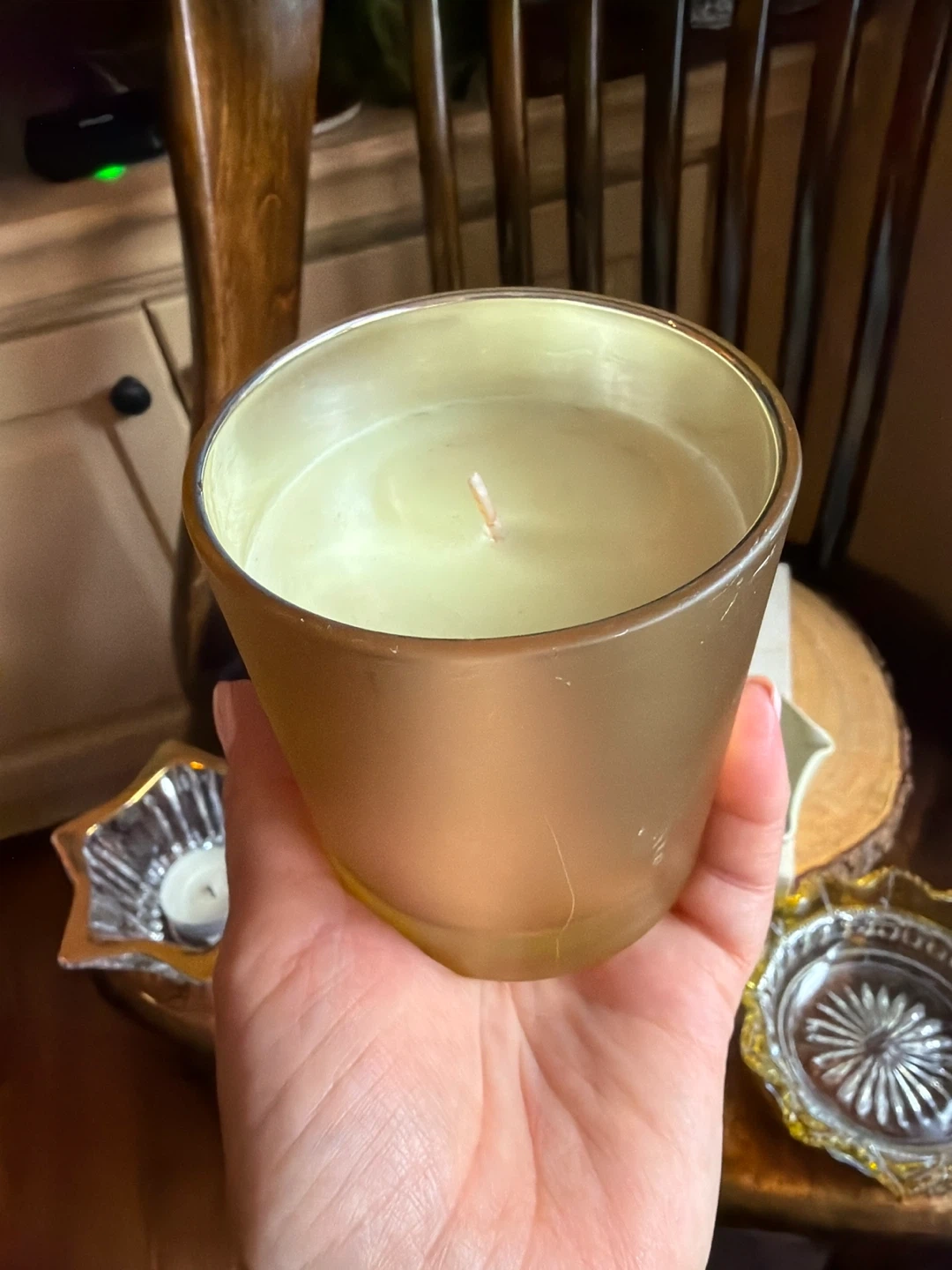 #1 A Fruits & Passion candle in gold votive in the Winter Berries scent for $5