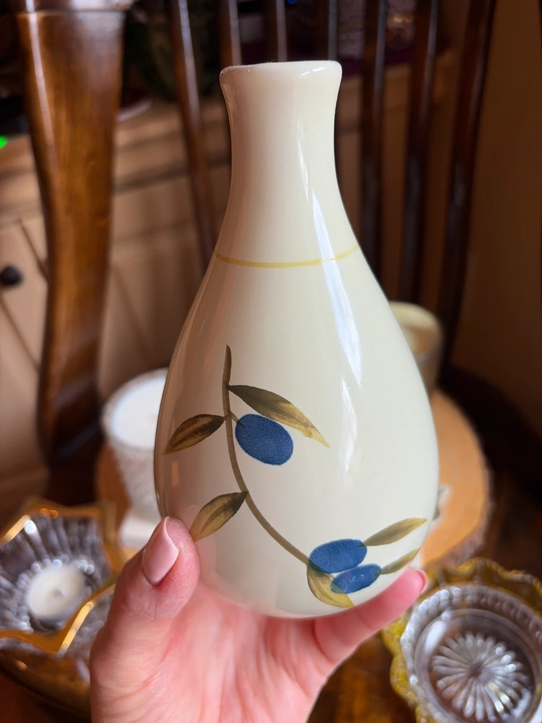 #4 Ceramic Olive Vine Bud Vase 7” tall for $5