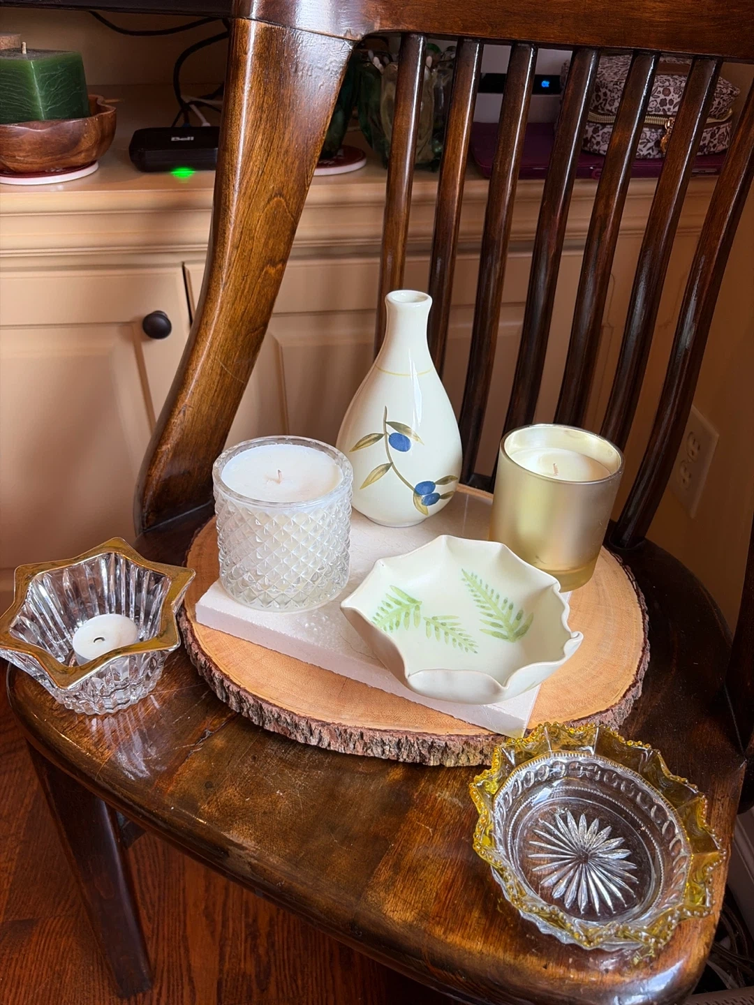 #6 is a Jozalle white candle in a pretty glass diamond patterned votive in scent Verdant $5