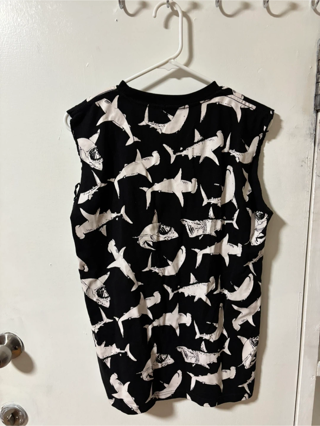 Kenzo Paris tank top with a cool black and white shark print all-over. It's in great condition and perfect for summer!