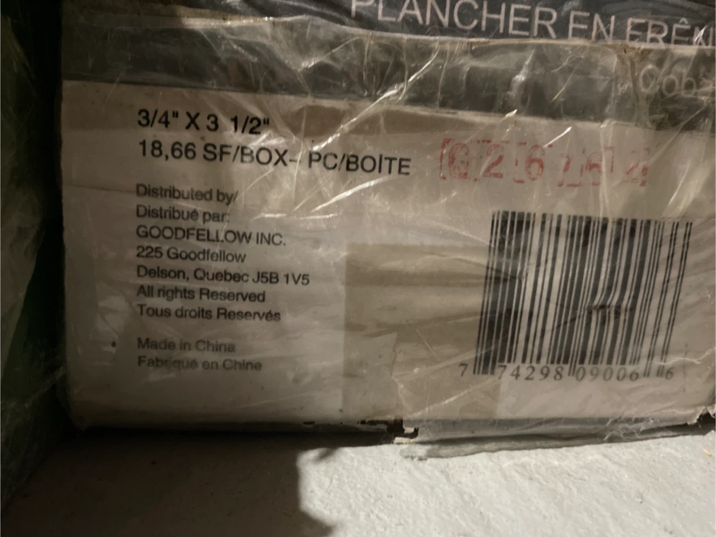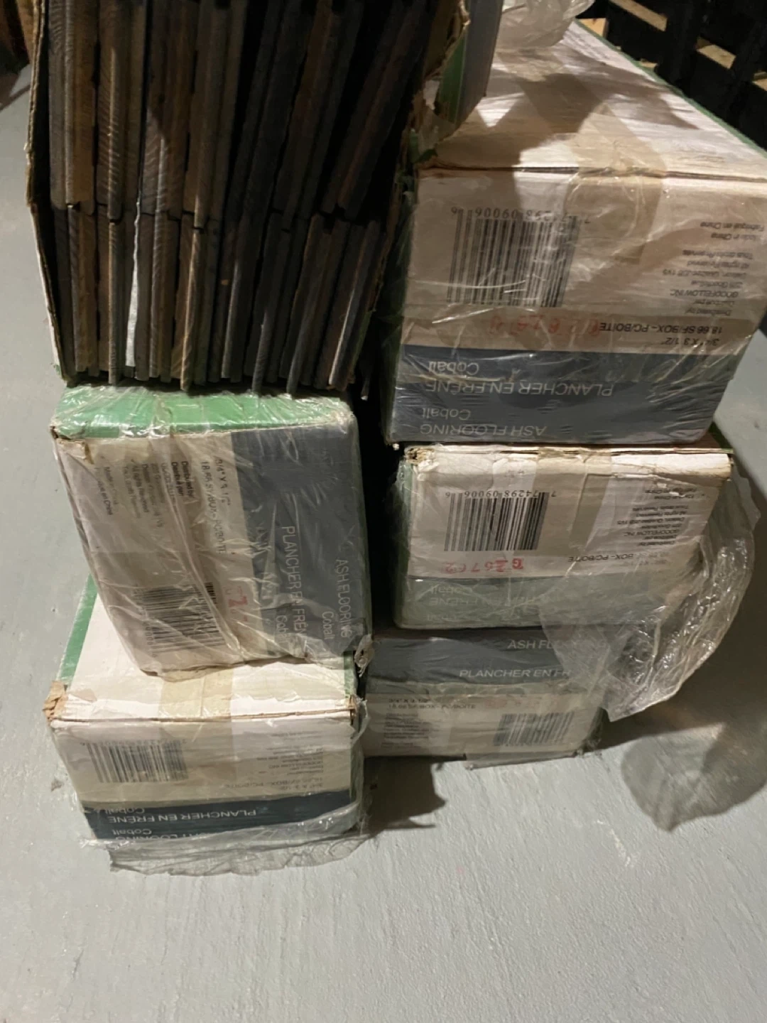 Selling 5 new boxes of Cobalt coloured ash flooring. The dimensions are 3/4" x 3 1/2". Each box contains 18.66 square feet of flooring.