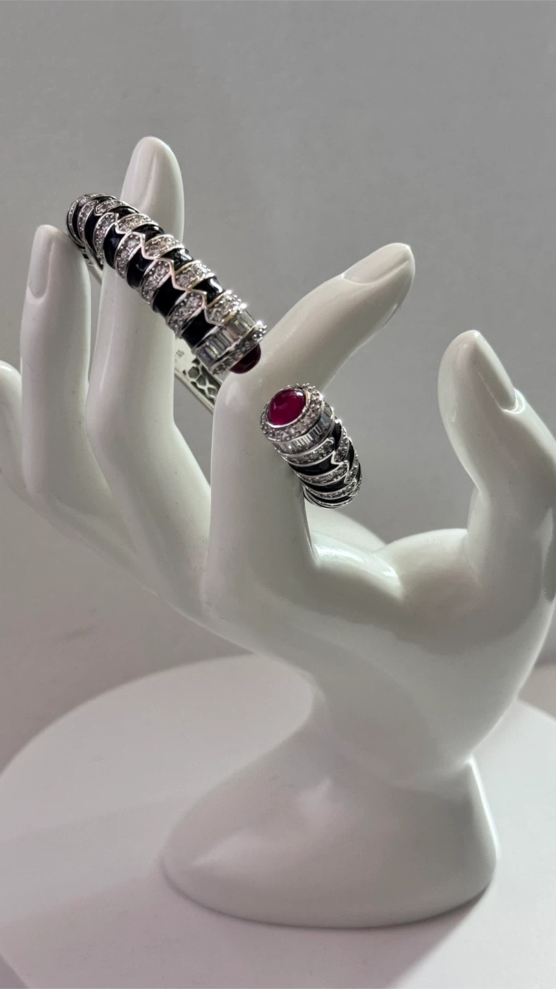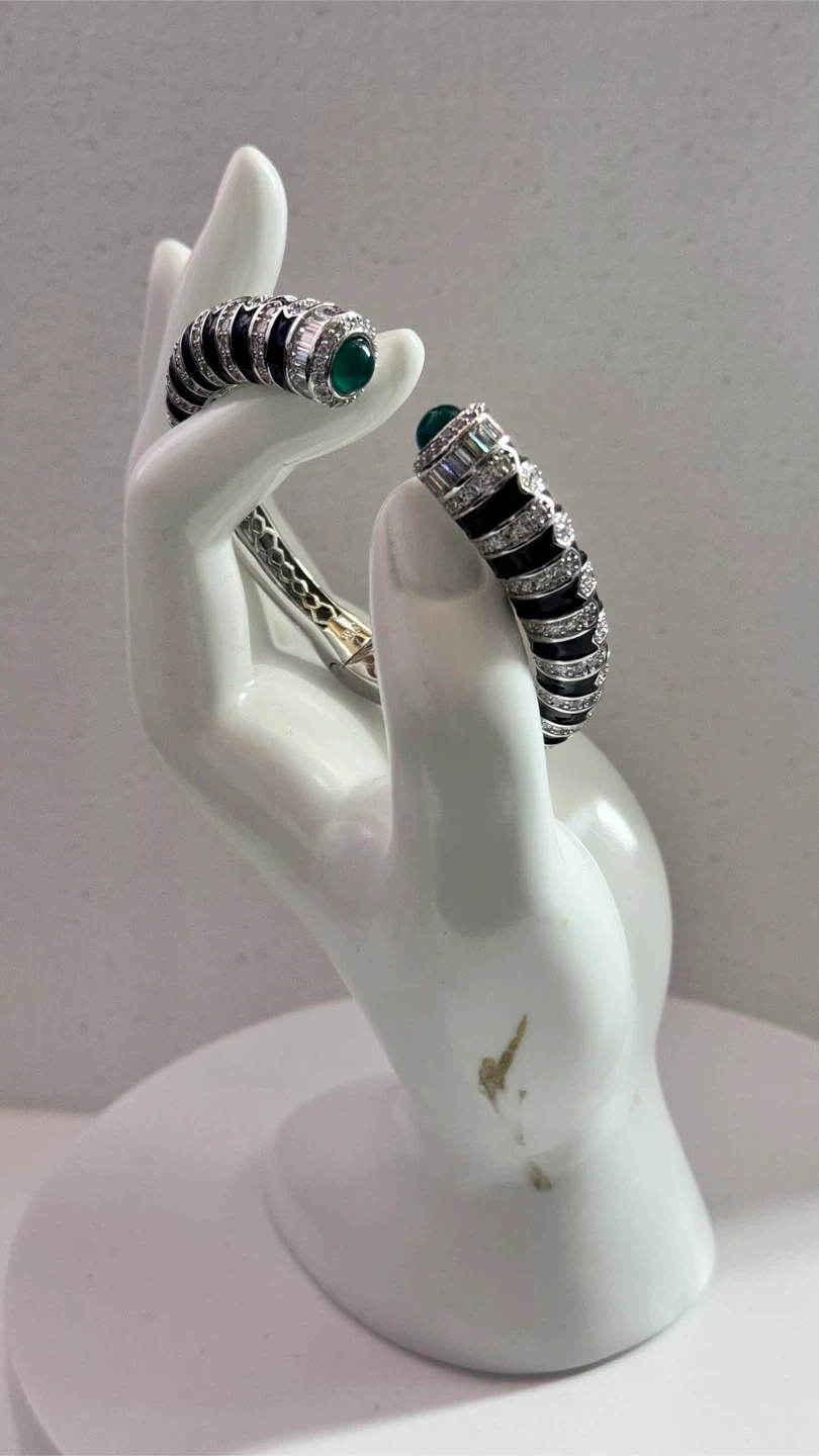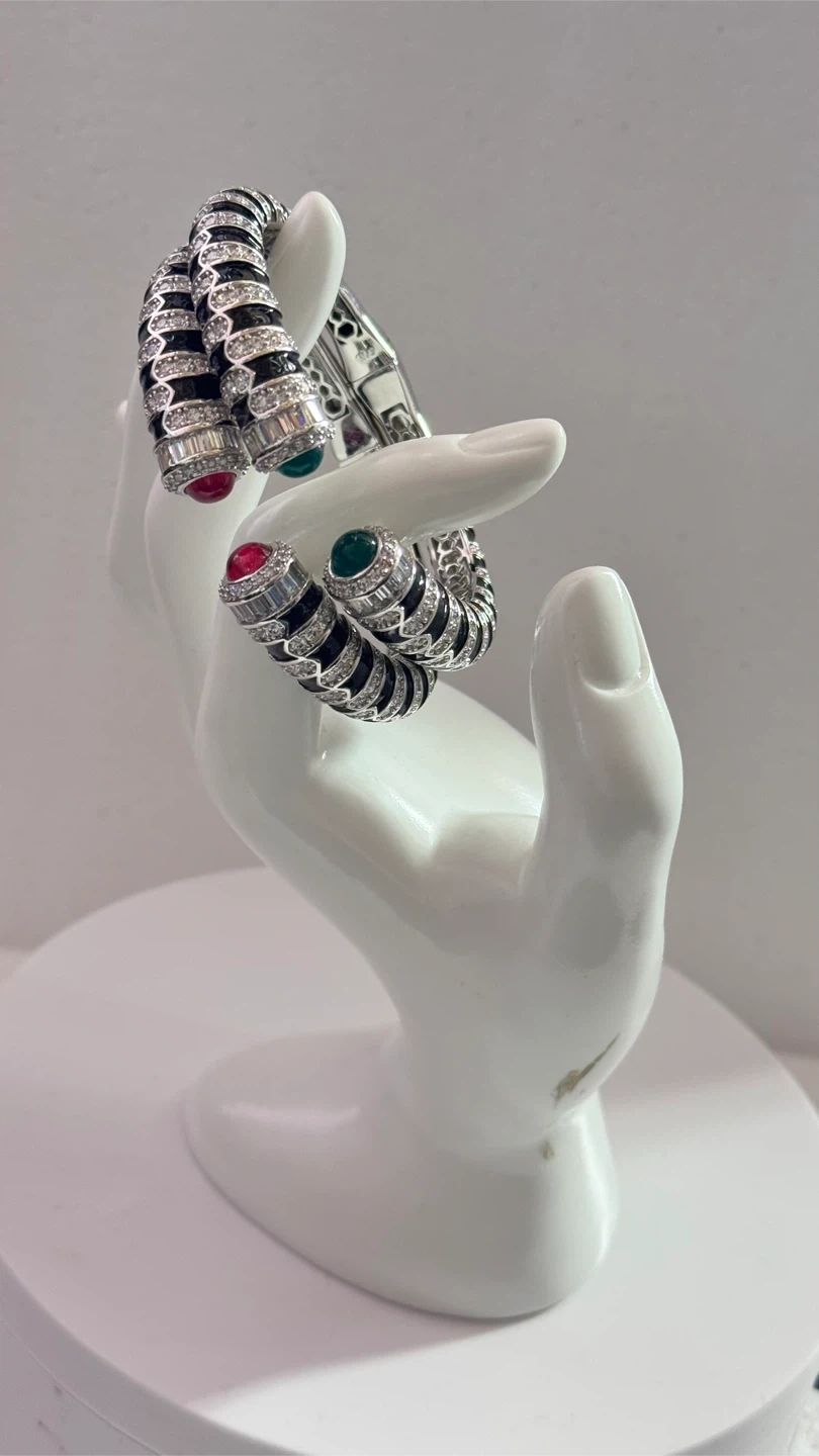 Selling a stylish diamente crystal bracelet with a black and silver design. It features alternating black and silver stripes and some small gemstones Two colours are available green and red
