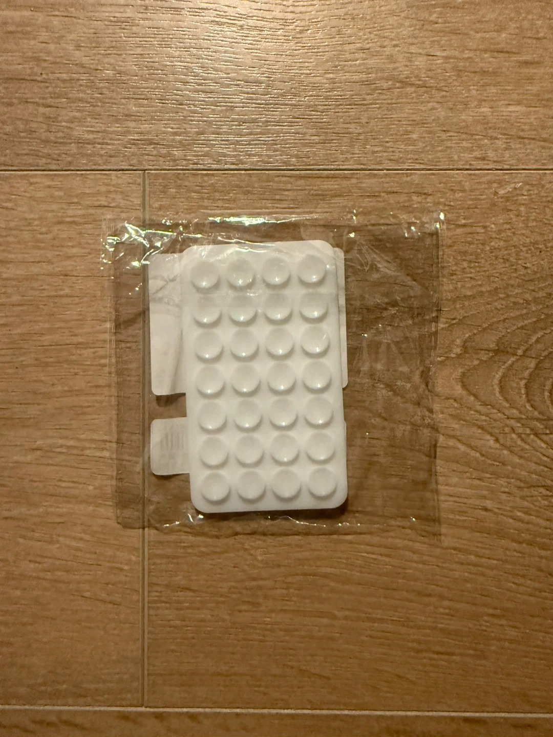 It’s perfect for filming and never used. It’s double sided so you can stick it both on your phone case and the place you wanna place your phone. It’s white and haven’t even been out of the package waiting to get claimed.