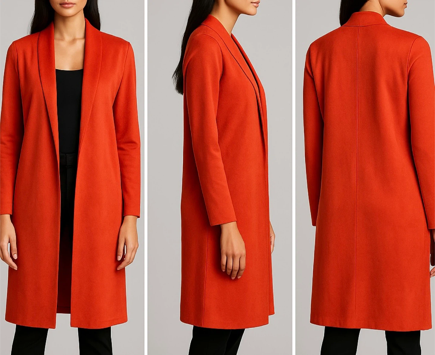 ✨ Sleek open-front drape (no buttons, clean minimalist silhouette)