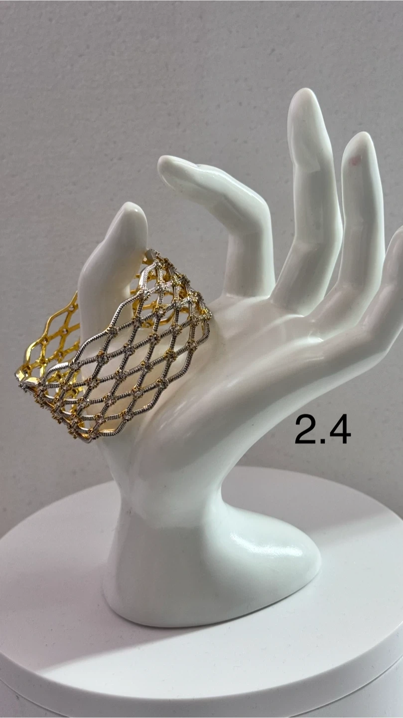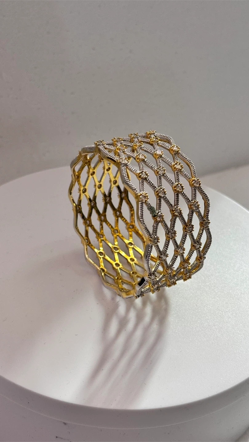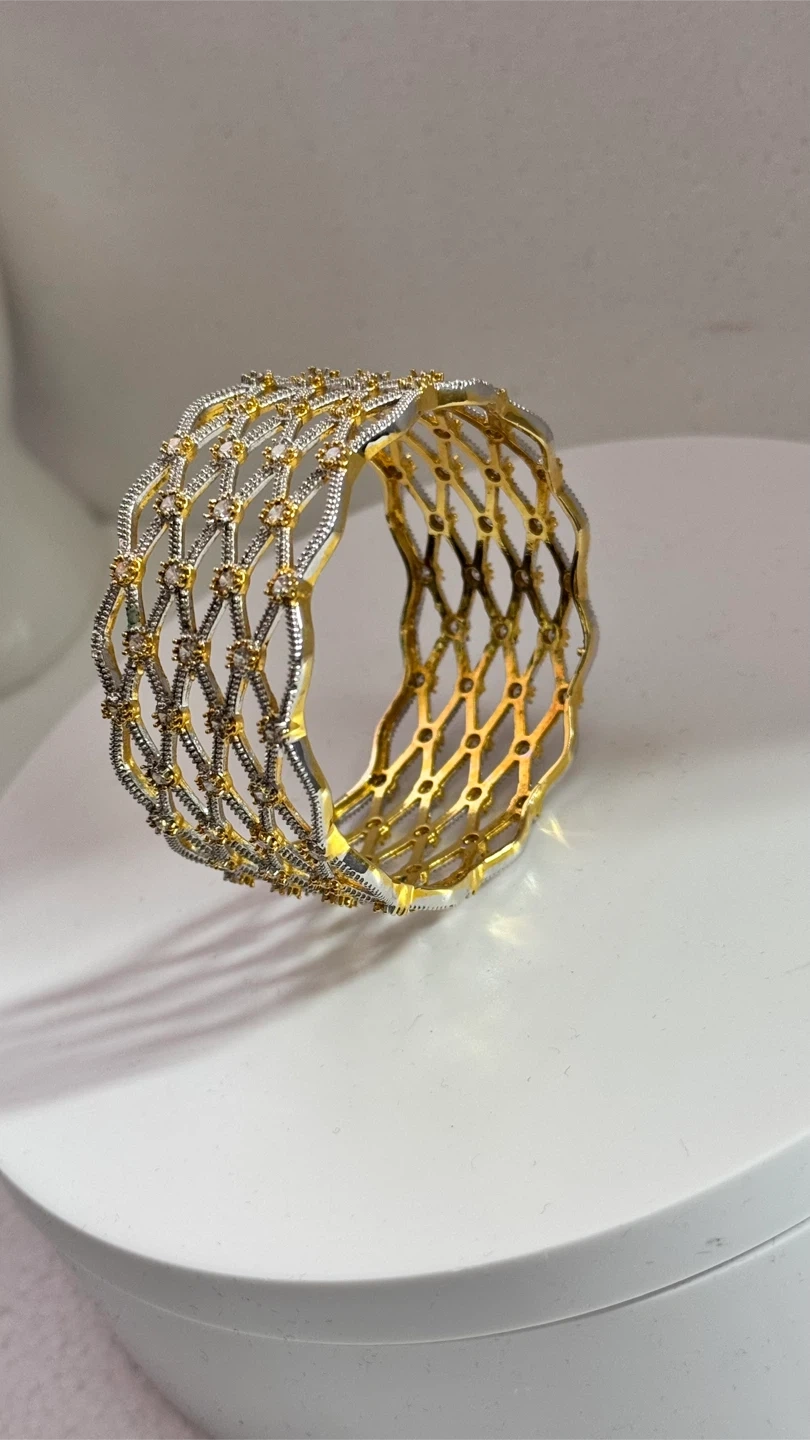 This is a beautiful gold and silver bangle bracelet. It's in great condition and would be a lovely addition to any jewelry collection!