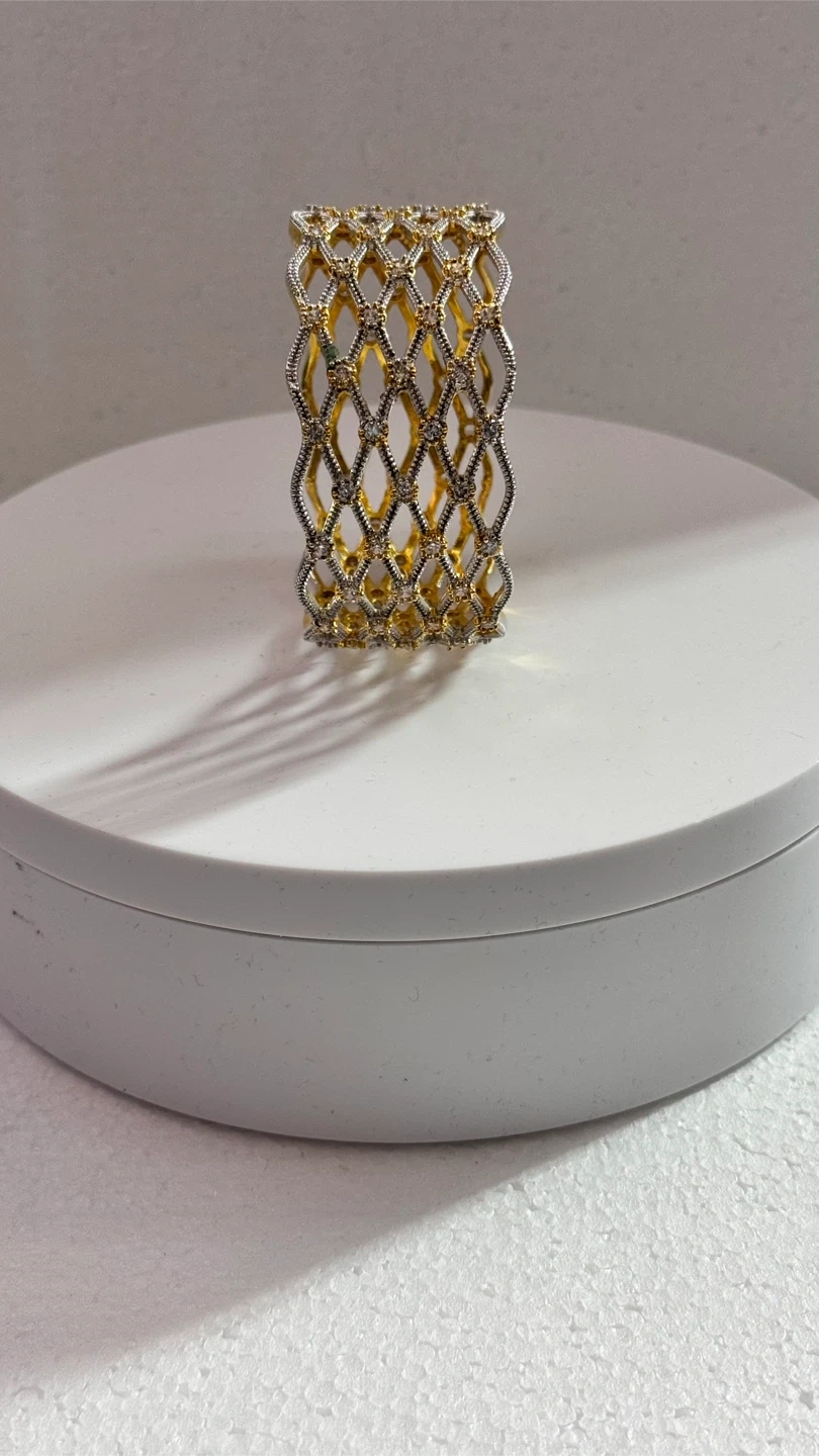 This is a beautiful gold and silver bangle bracelet. It's in great condition and would be a lovely addition to any jewelry collection!