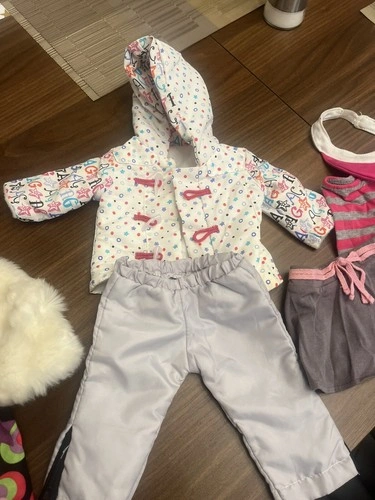 Genuine American Girl Doll Clothes Lot 7 piece Ski Jacket And Pants Leggings (striped)Pants (colorful)Skirt with American girl logoHatFaux fur wrap All excellent condition
