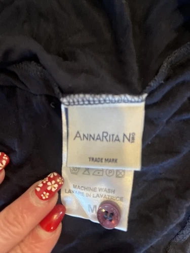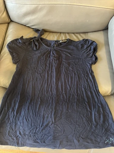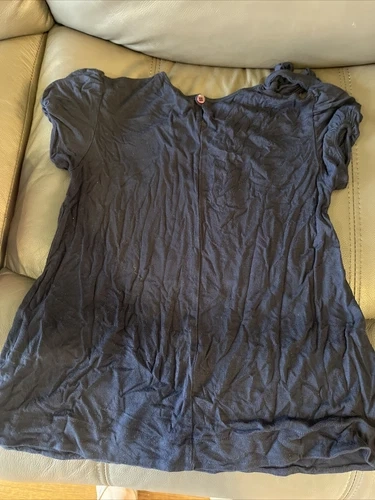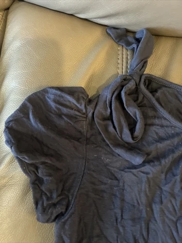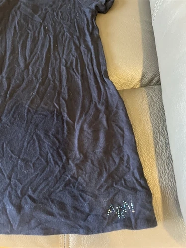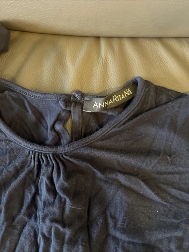 Designer Anna Rita women’s pleath Shirt Top T-shirt Scoop Neck Navy Small Puff Sleeve. Marked M but fits like size small. Rhinestone logo on the bottom right. Super soft fabric.