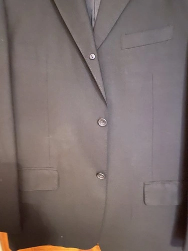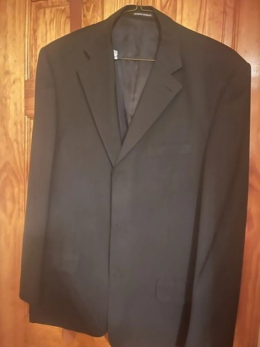 Vintage Giorgio Armani Black Single Breasted Wool Suit Italy Size 54 Euro. Fits as size Large regular length. Excellent condition, worn one time for a wedding. Purchased in the 90s in Germany.