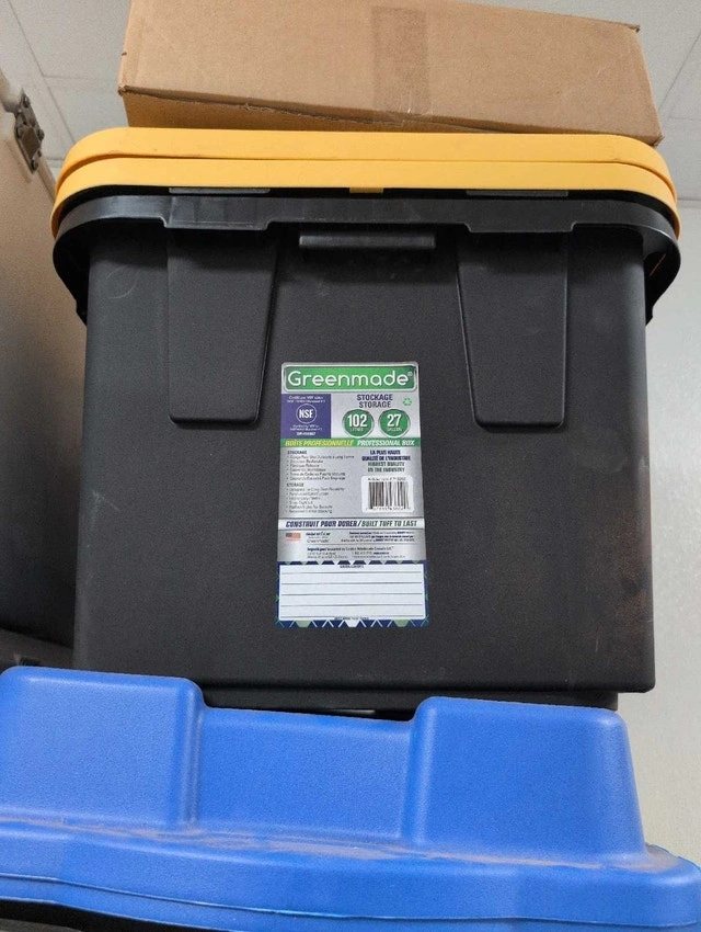 This is a used Greenmade 102-litre storage tote, perfect for organizing your space! It's durable and ready to handle all your storage needs. Additional Specifications: * Brand: Greenmade * Capacity: 102 liters * Condition: Used Based on similar listings , a used tote of this size typically sells for around $15 to $30. Given its good condition, I've priced it competitively. If the ad is up, it's still available, so don't hesitate to reach out. Happy organizing!