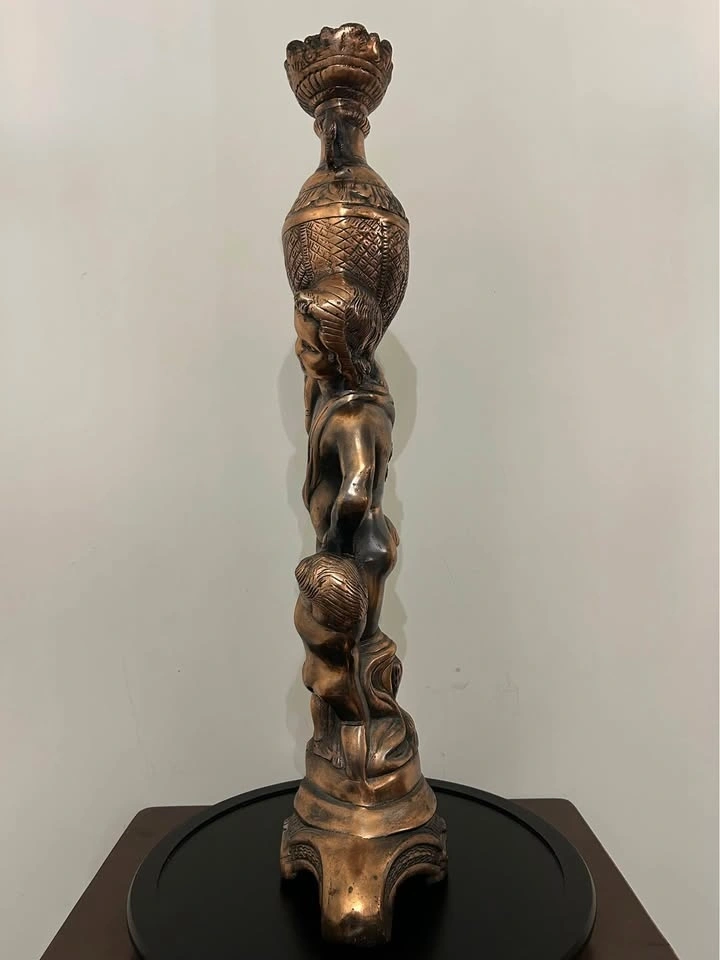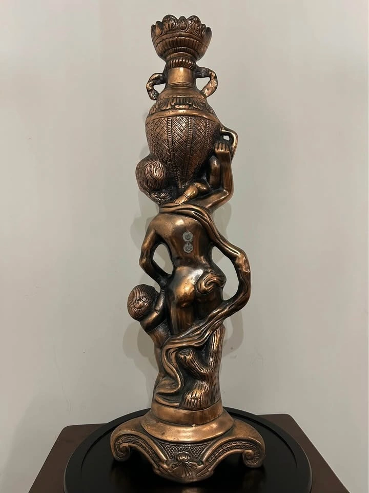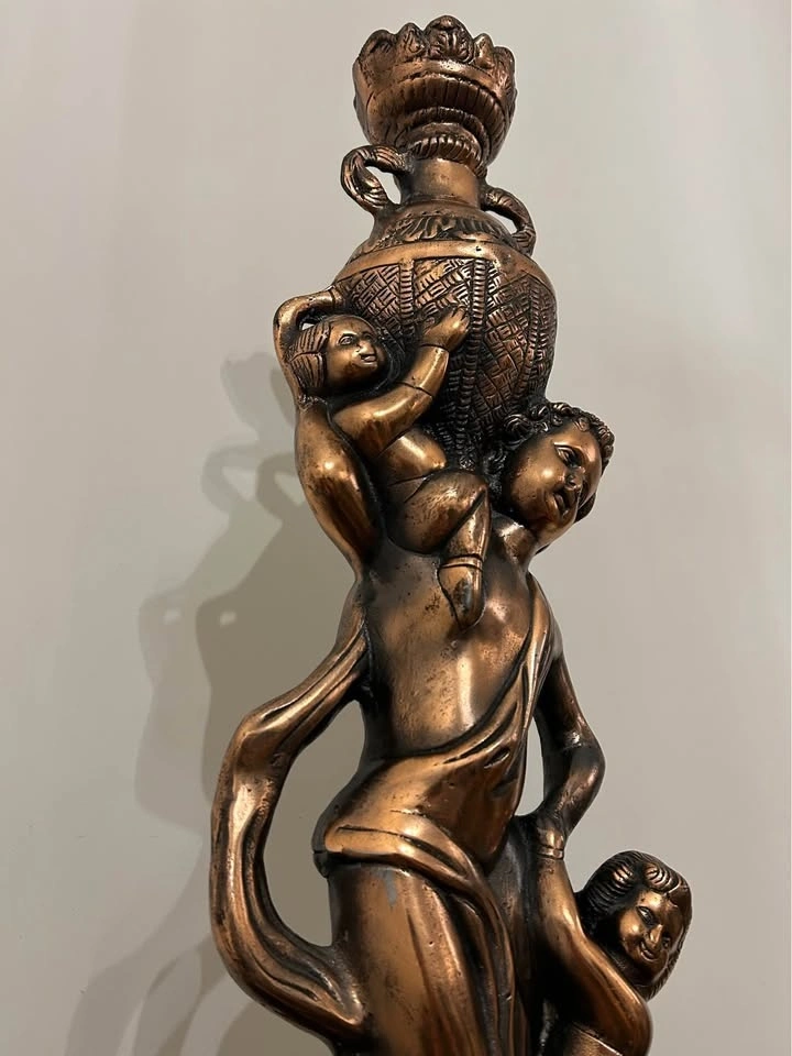 Depicts a woman carrying an ornate vase with two cherub-like children climbing around her — a beautiful baroque / neoclassical decorative style, perfect for statement interiors, studio décor, or a classic home entrance.
