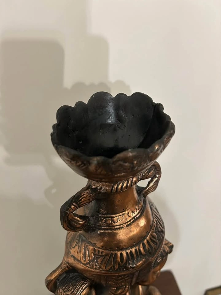 Large vintage decorative floor sculpture made of cast metal with bronzed finish. Impressive height around 27 inches.