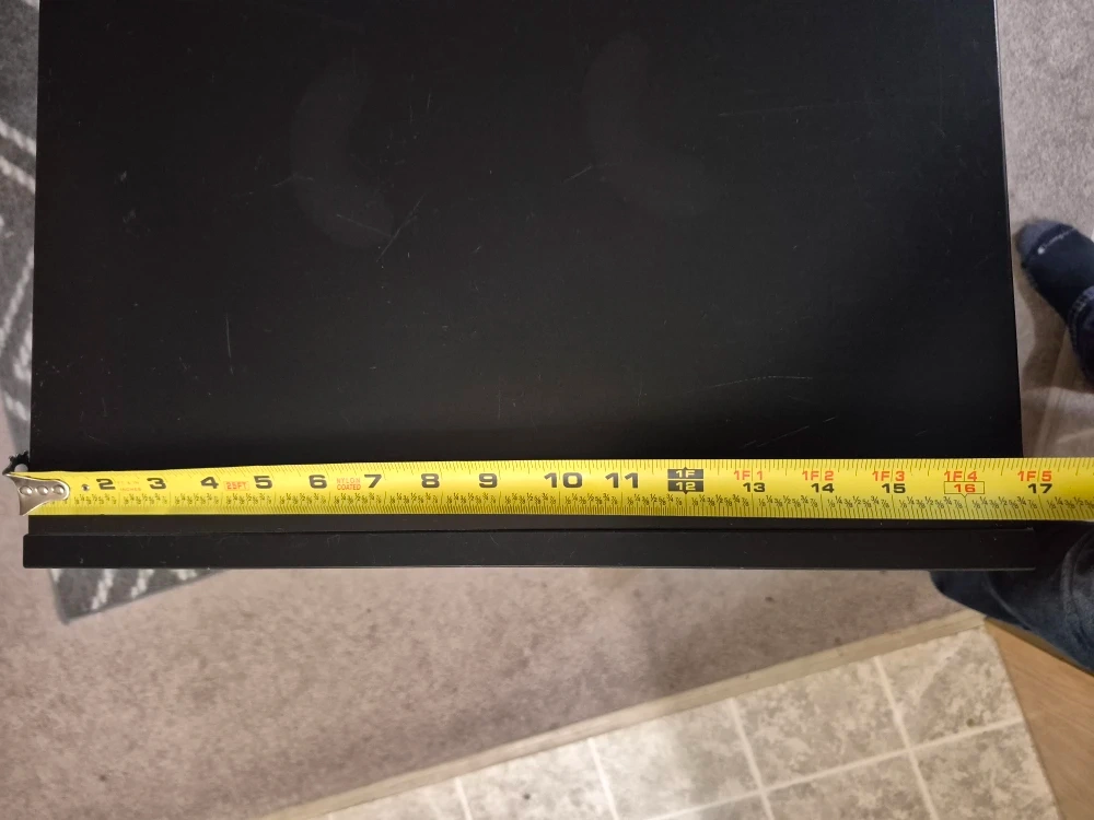 Selling a black storage shelf that comes with red bins. It's in great shape and perfect for organizing toys, clothes, or anything else you need to store. The shelf is about 16 inches wide and 42 inches tall.