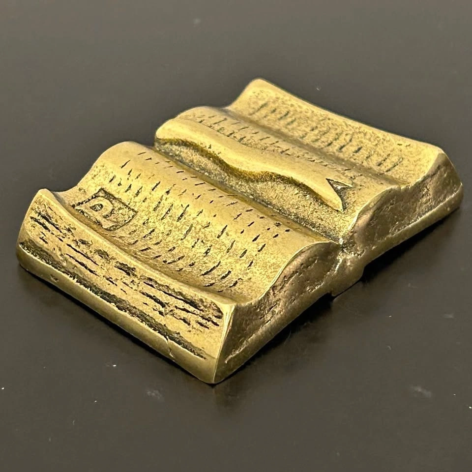 Charming vintage solid brass paperweight shaped like an open book with a ribbon marker. Beautifully cast with great texture and warm patina. A perfect desk accessory for readers, writers, or anyone who loves unique brass decor. Adds a classic, scholarly touch to any space.