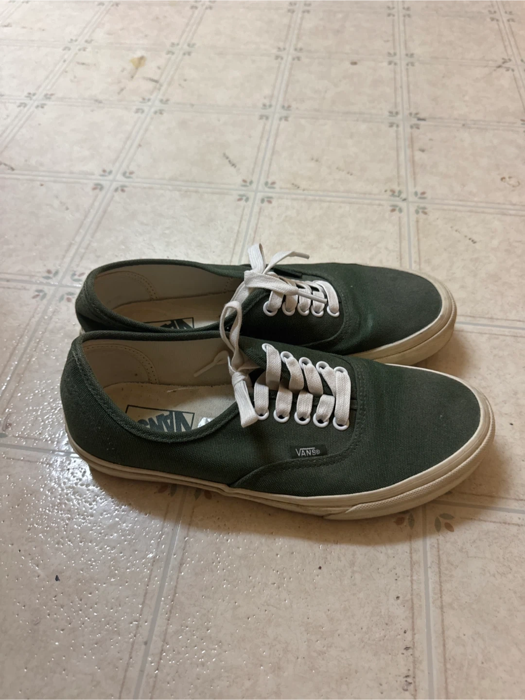 Selling a pair of Vans Authentic shoes in olive green. They're in good condition and ready for a new home! Classic style and comfortable for everyday wear