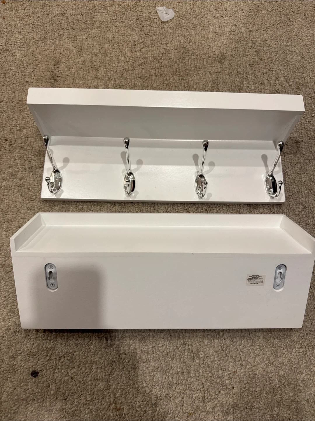 I'm selling two white wall-mounted coat rack shelves! They're perfect for entryways, bedrooms, or anywhere you need a little extra storage and hanging space. They are new and ready to add some organization to your home