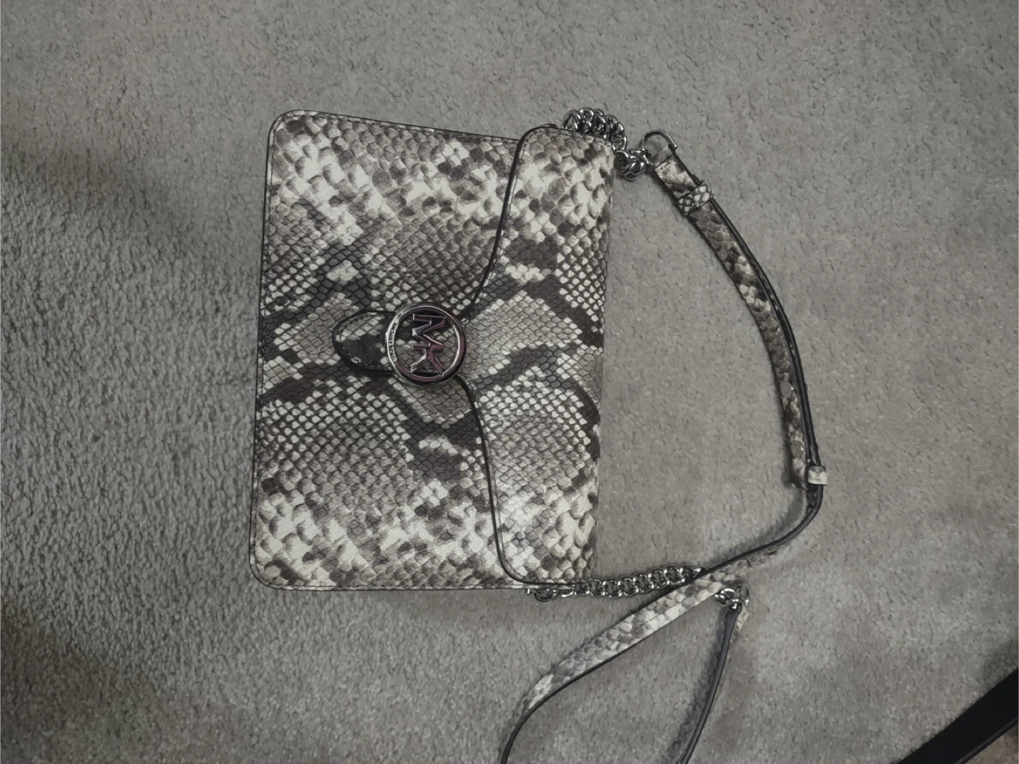 Selling a stylish Michael Kors crossbody bag with a unique snakeskin pattern. It's in great condition and perfect for adding a touch of flair to any outfit!