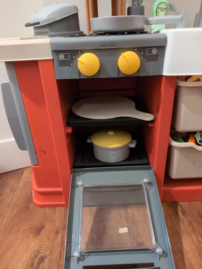 Selling a Little Tikes kitchen playset. It comes with all the accessories shown in the pictures, including cookware and play food! It’s a great playset for kids who love to pretend cook and play house