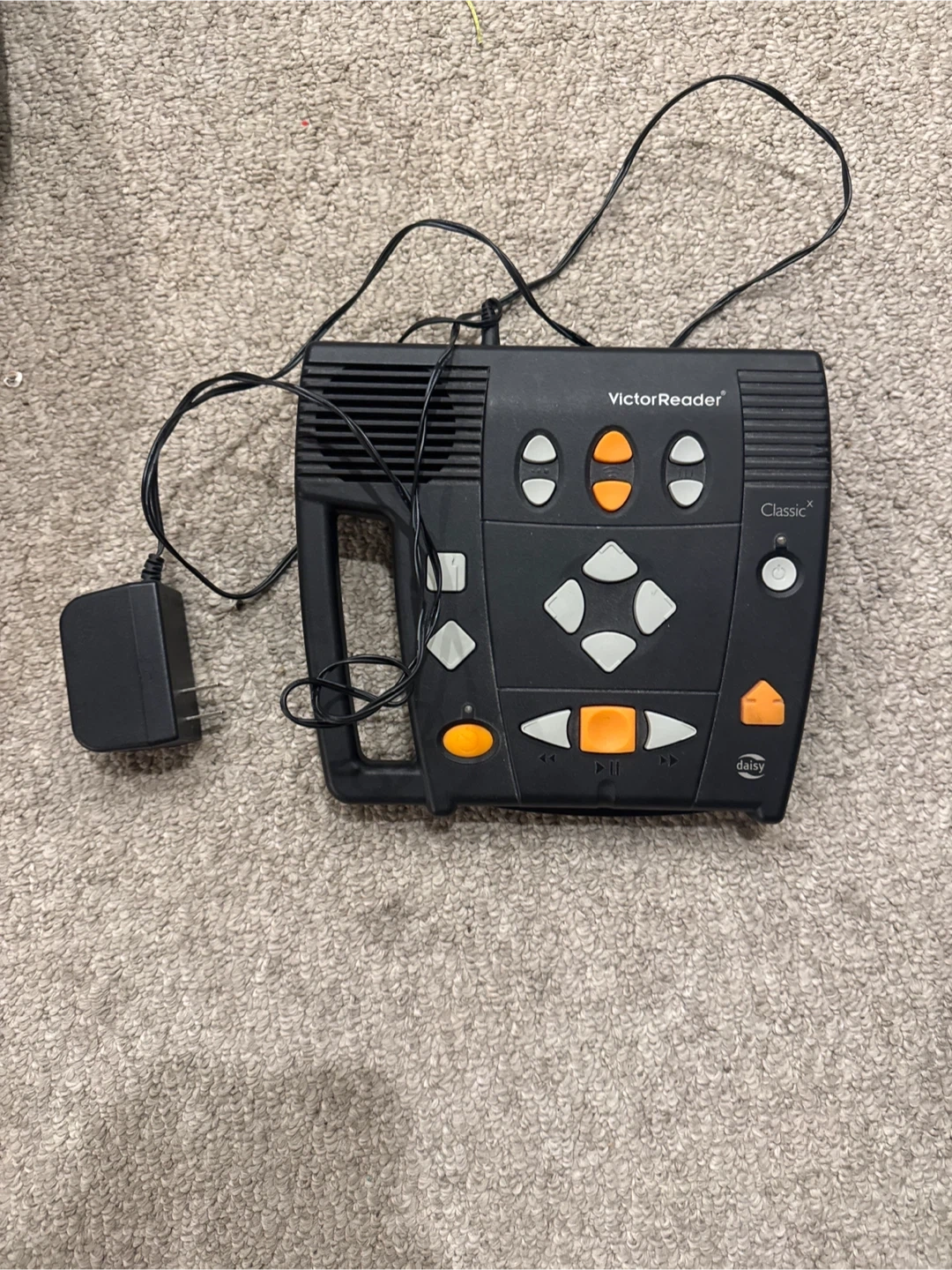Selling a VictorReader Classic X Daisy player. It appears to be in good condition and includes the charger. It's a portable device designed for reading Daisy-formatted books and other accessible content
