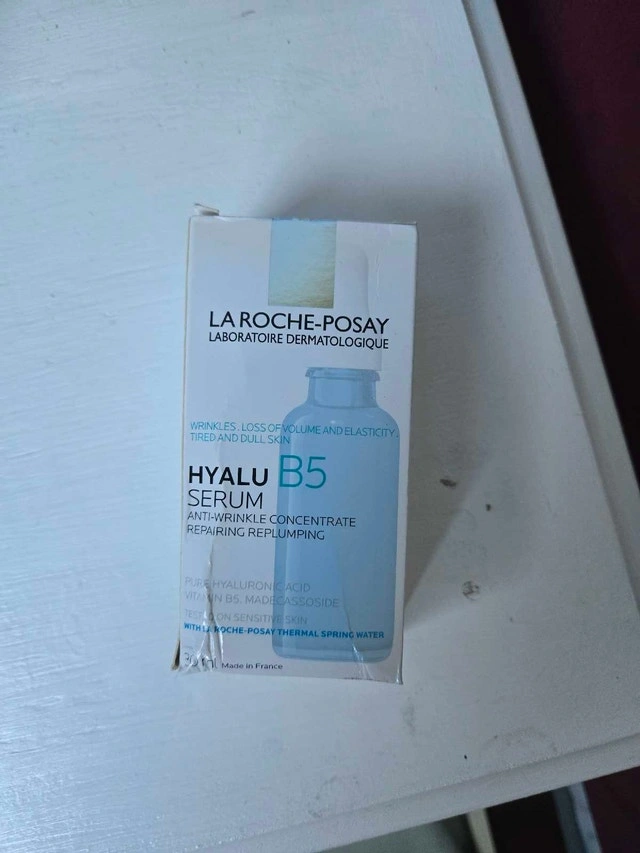 Discover the rejuvenating power of La Roche-Posay Hyalu B5 Serum, an anti-wrinkle concentrate designed to repair and replump tired and dull skin. This formulation contains pure hyaluronic acid, vitamin B5, and madecassoside, tested on sensitive skin and infused with La Roche-Posay thermal spring water. While the box may show minor signs of handling, the serum inside is completely new and unused.
