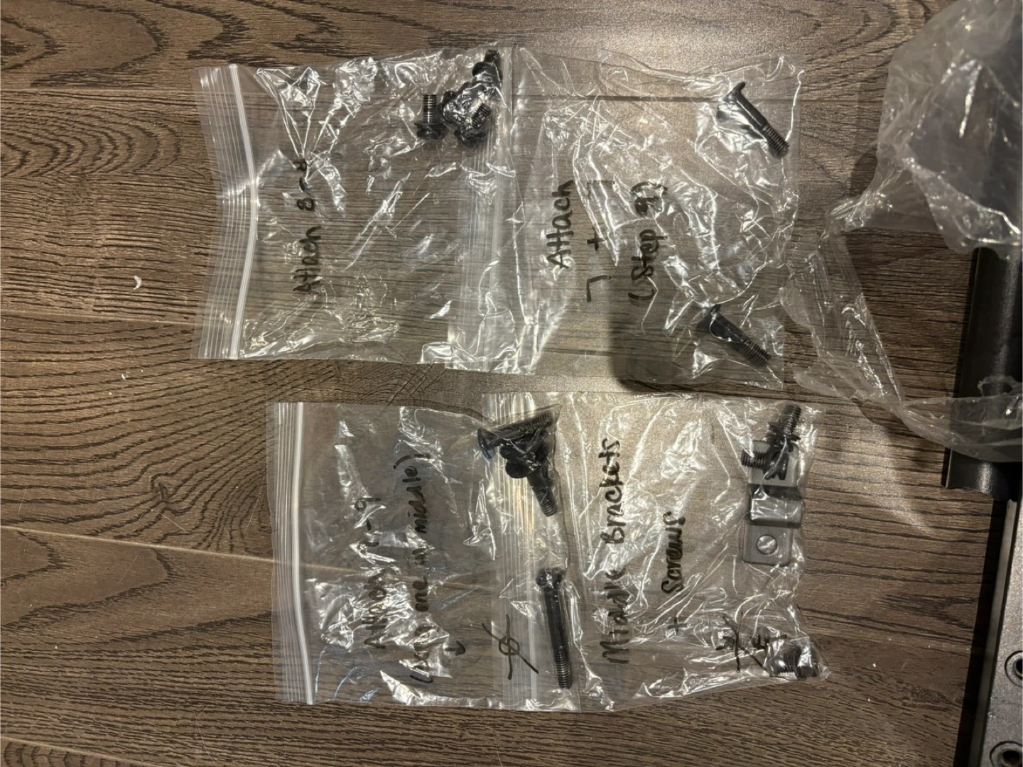 - bed is dismantled, and all parts are labelled in ziploc bags to help with the building process