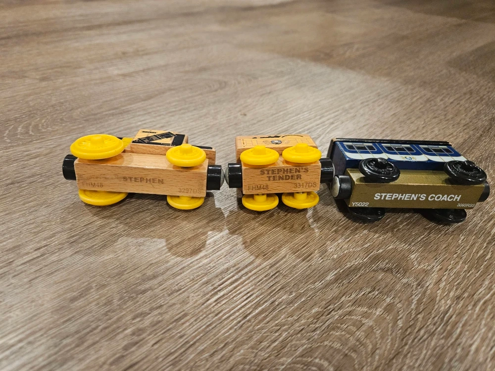 Stephen from Thomas & Friends. Comes with his tender and a coach. Has play wear, but is in good condition.