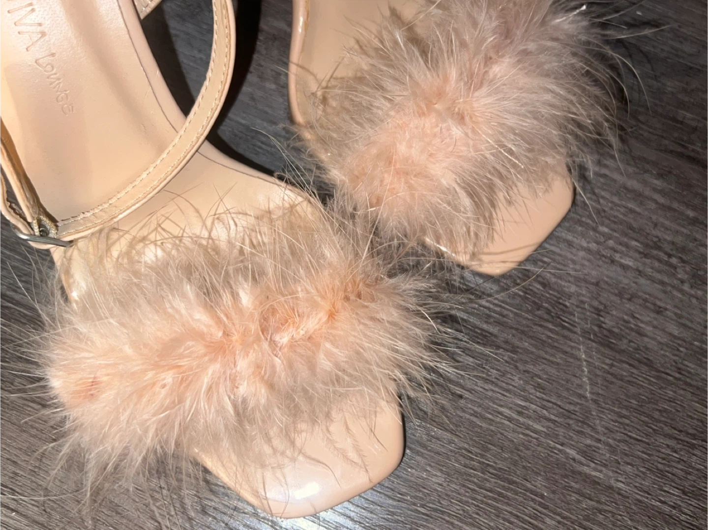 Selling a pair of Nova Lounge heels in size 7.5! They're a beautiful light pink/nude colour with a fun, feathery detail. Perfect for a night out or a special occasion