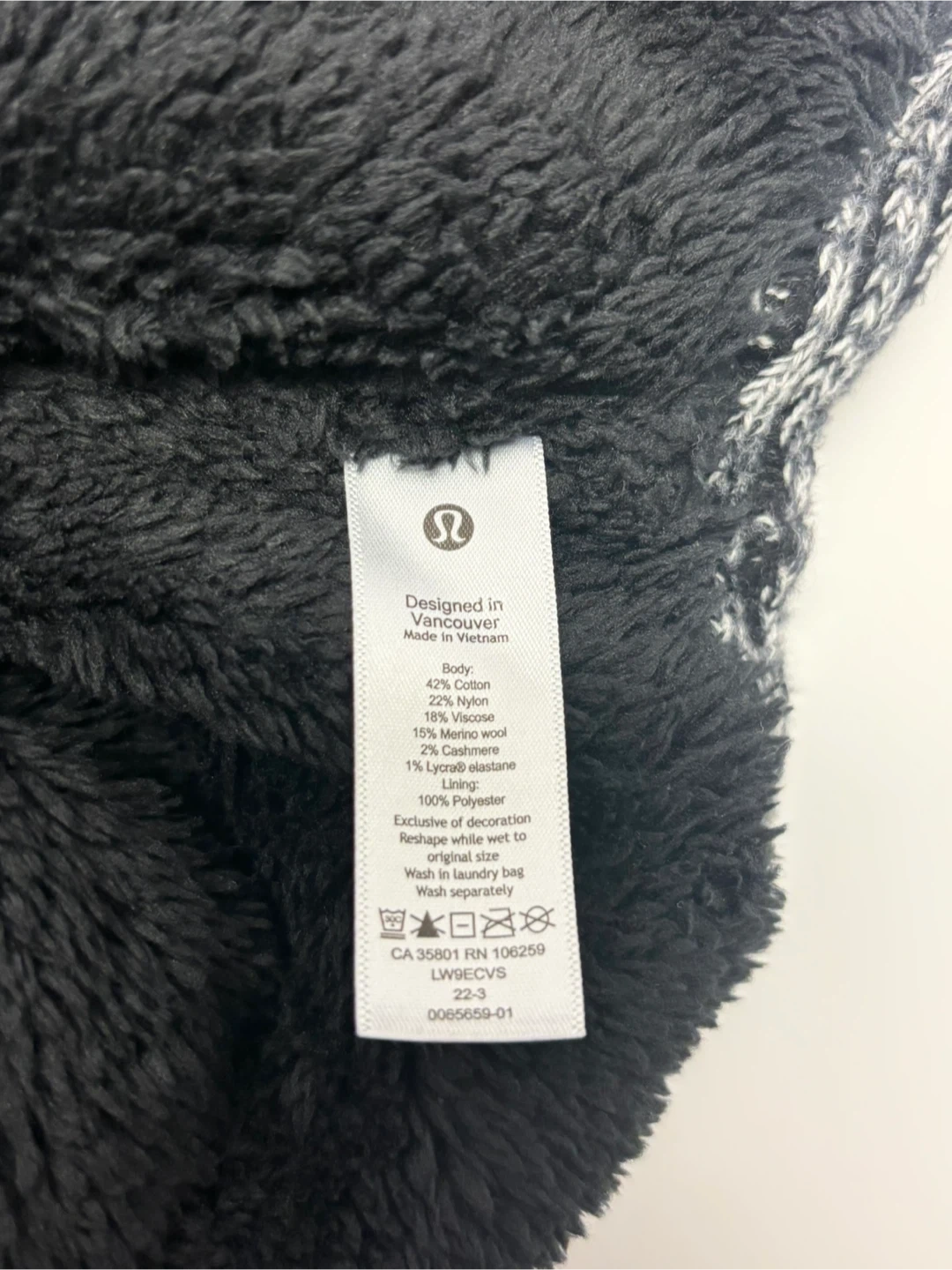 The body is made of 42% cotton, 22% nylon, 18% viscose, 15% merino wool, 2% cashmere, and 1% lycra elastane. The lining is 100% polyester. Designed in Vancouver!